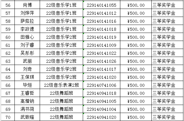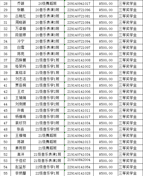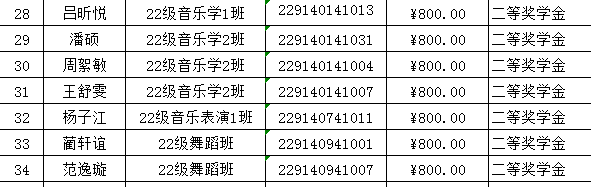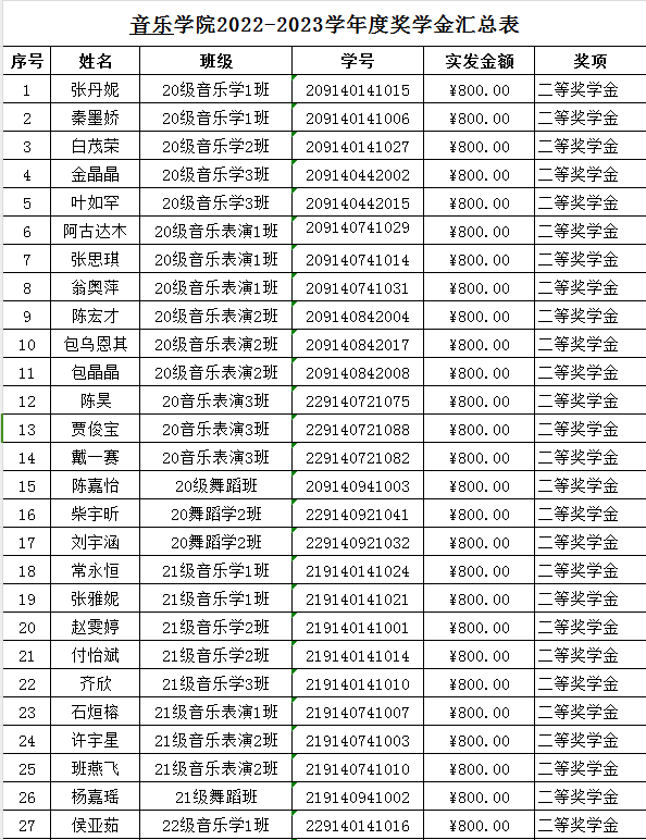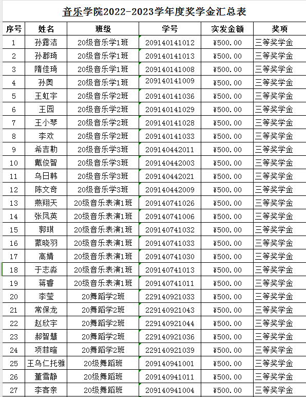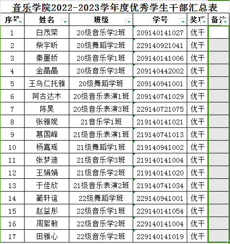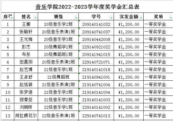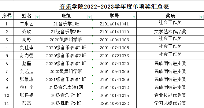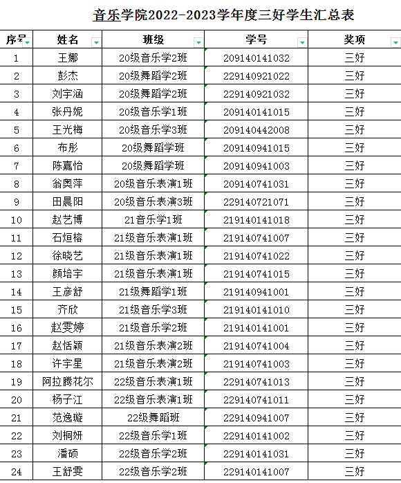 音乐学院2023年校级奖学金及“三好”“优干”“单项”先进班集体情况公示