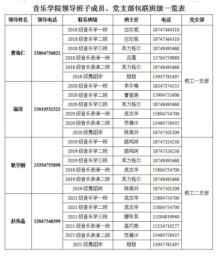 附件:1.音乐学院领导班子成员、党支部包联班级表