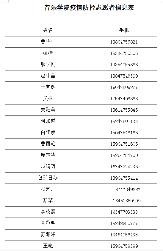 成立音乐学院新型冠状病毒感染肺炎防控工作领导小组,统筹做好此次疫情防控工作。人员如下: