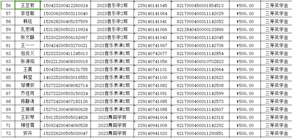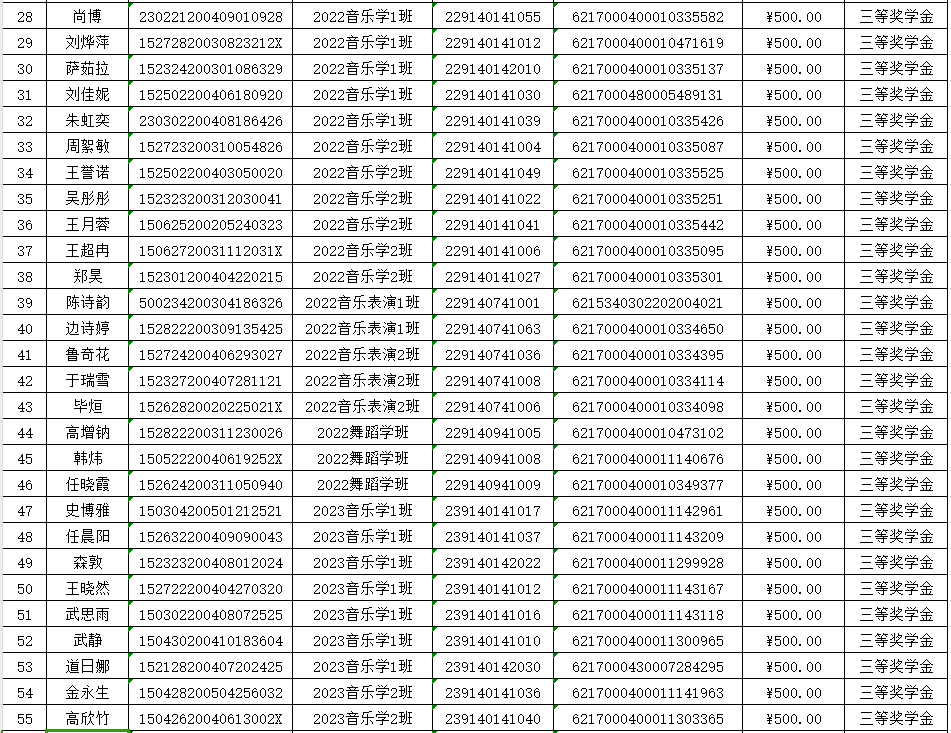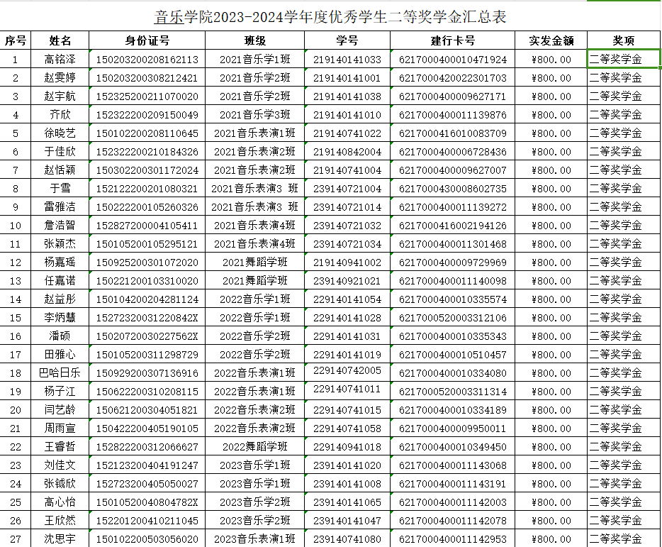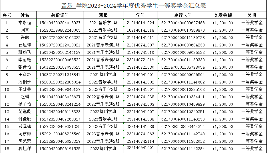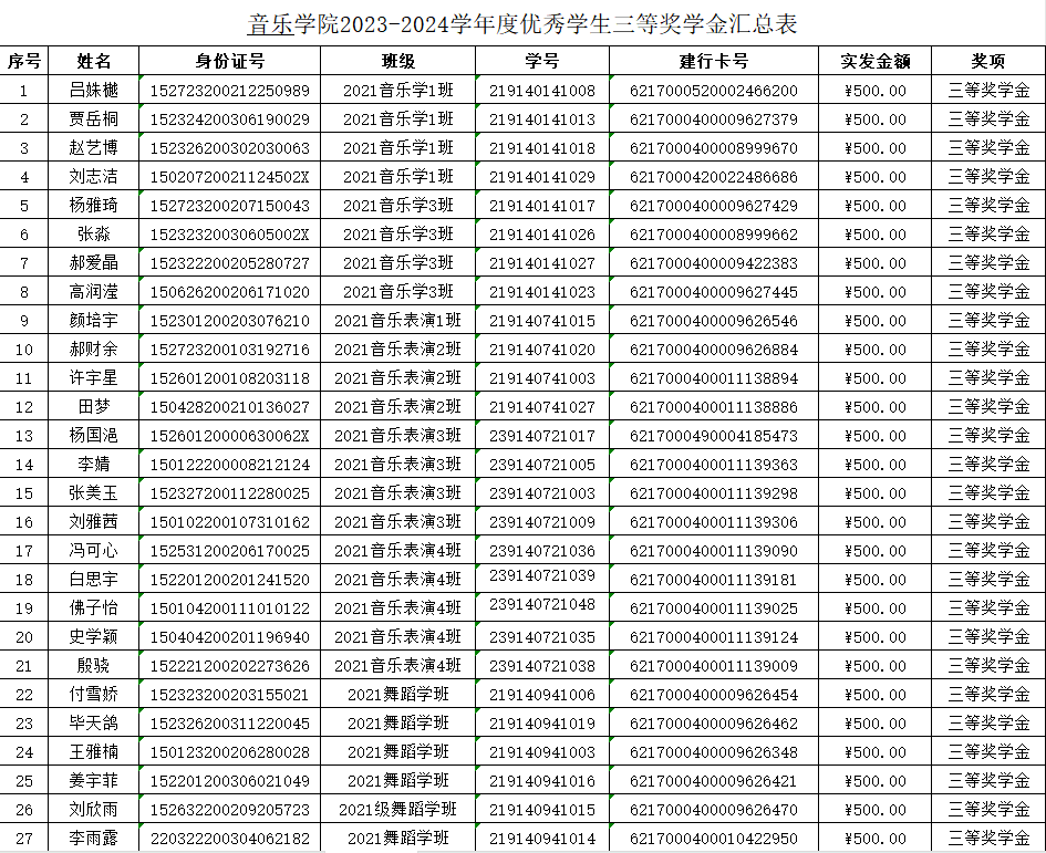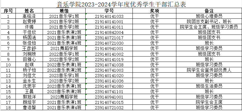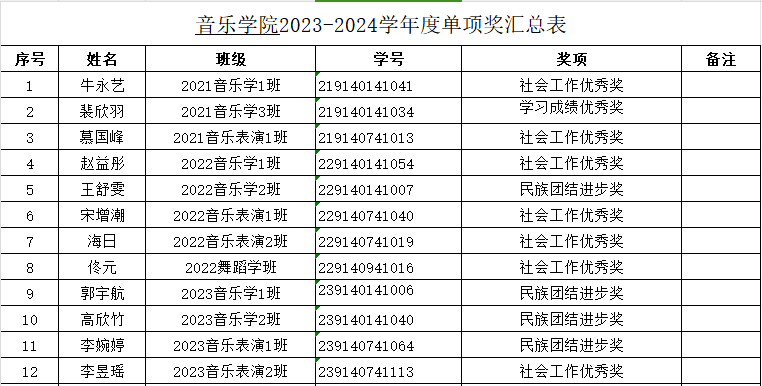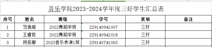 音乐学院2023-2024学年度学生奖学金、优秀学生干部、三好学生、单项奖等公示