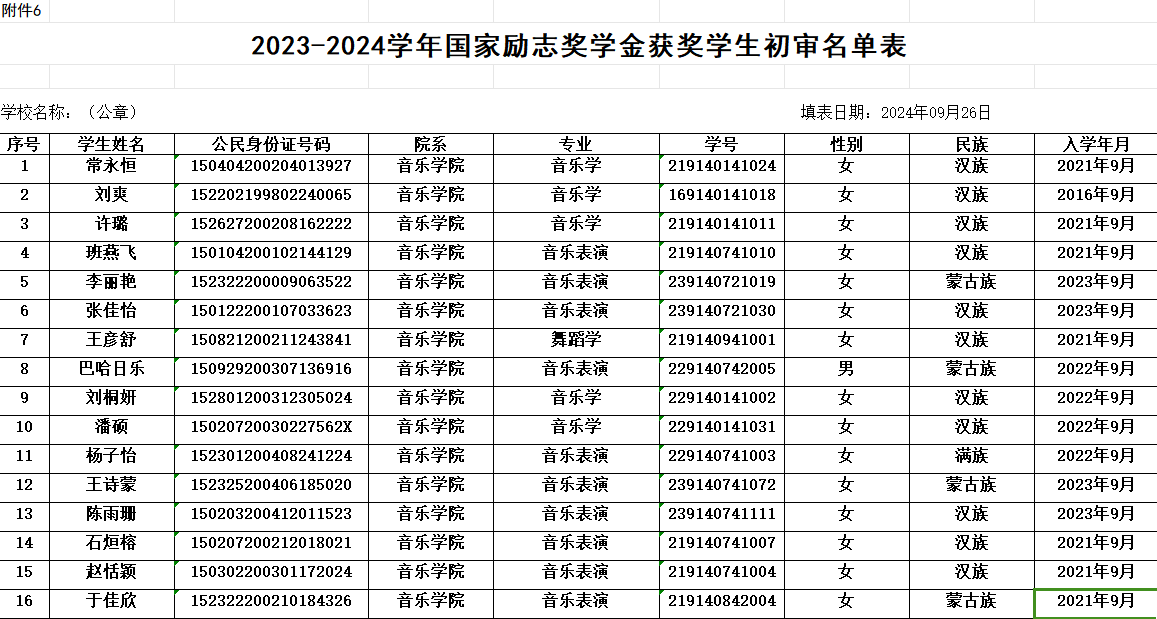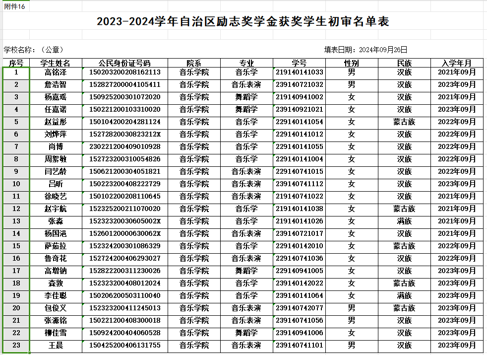 2023-2024学年国家、自治区励志奖学金获奖学生公示