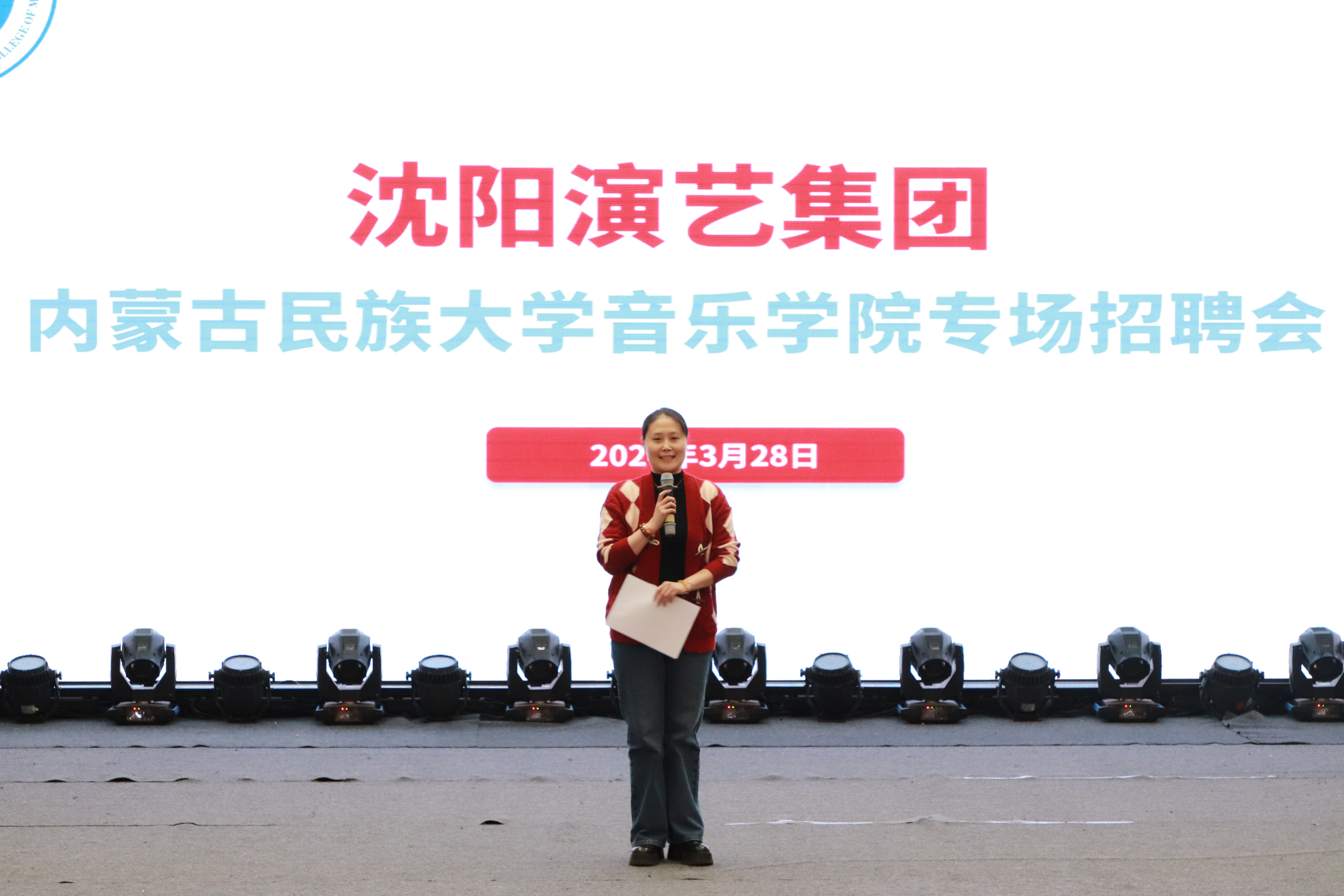 会上,沈阳演艺集团副经理李媚与音乐学院毕业生分享企业发展、职业成长的故事,介绍集团的用人要求及薪资待遇,并诚邀他们加入沈阳演艺集团的大家庭,本次宣讲为即将走出校园的学子们提供了一个了解行业趋势、规划职业道路的宝贵机会。
