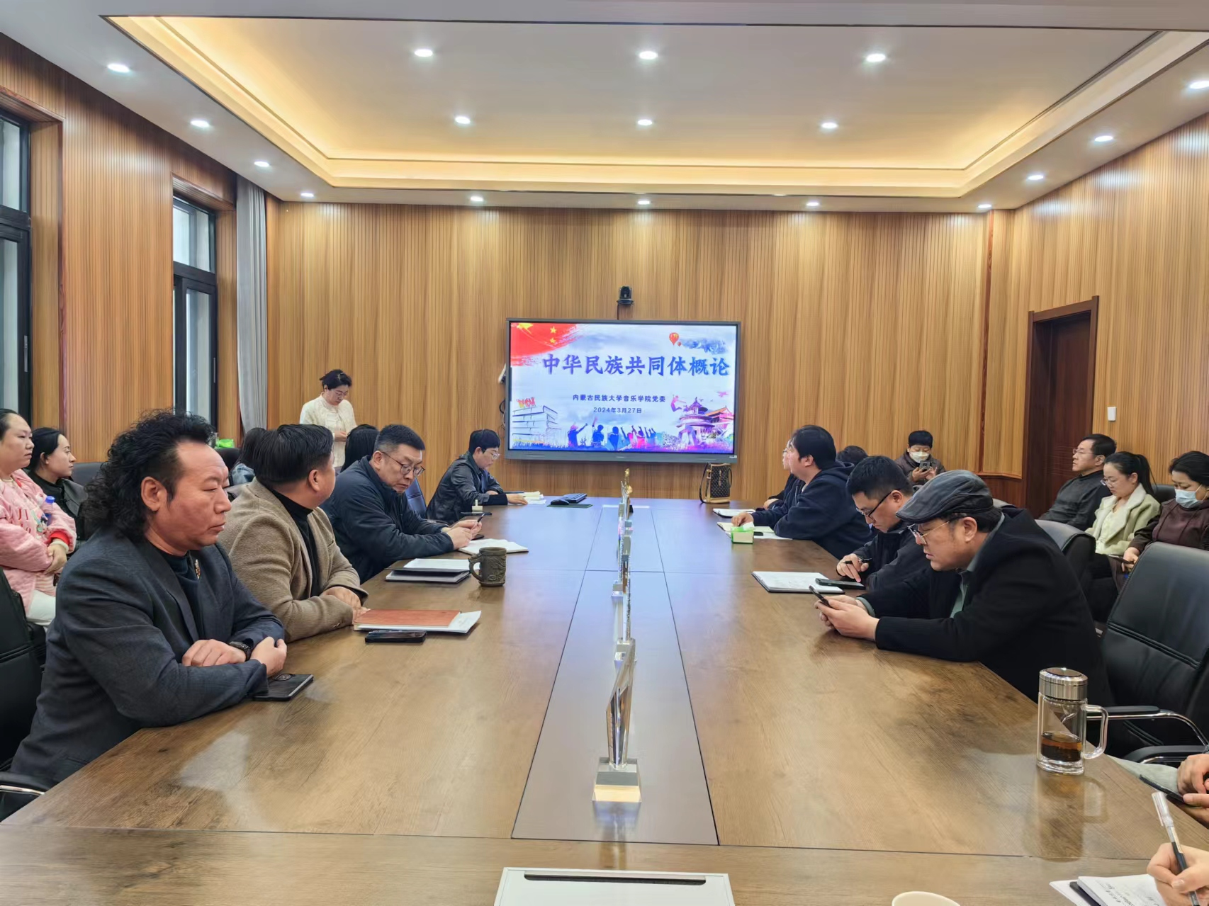为进一步推进习近平总书记关于加强和改进民族工作的重要思想进教材、进课堂、进头脑,落实立德树人根本任务,铸牢中华民族共同体意识,推进中华民族共同体意识建设,根据内蒙古民族大学党委统战部要求,在音乐学院党委组织下音乐学院全体教职工在二楼会议室集中学习了“中华民族共同体概论”教材中第一章的第一节和第二节。