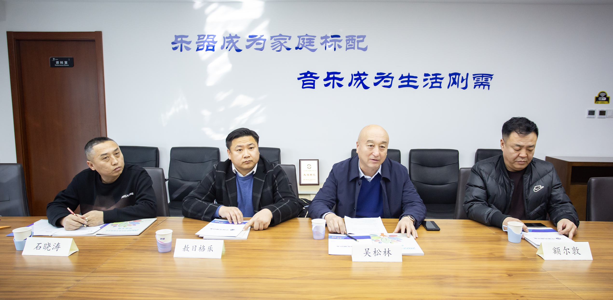 期间双方进行了深入细致的交流。孙瑞勇副会长代表中国乐器学会表示欢迎,并介绍了中国乐器协会的情况、目前开展的一些重要的工作。吴松林书记详细介绍了内蒙古民族大学发展现状及未来发展前景。并对传统乐器马头琴制作国家行业标准工作的推进、筹备马头琴专业比赛、下一步中国乐器家协会与内蒙古民族大学音乐学院间合作等进行了交流发言。敖日格乐副院长从乐器制作专业发展方向、项目申报等方面进行了交流发言。