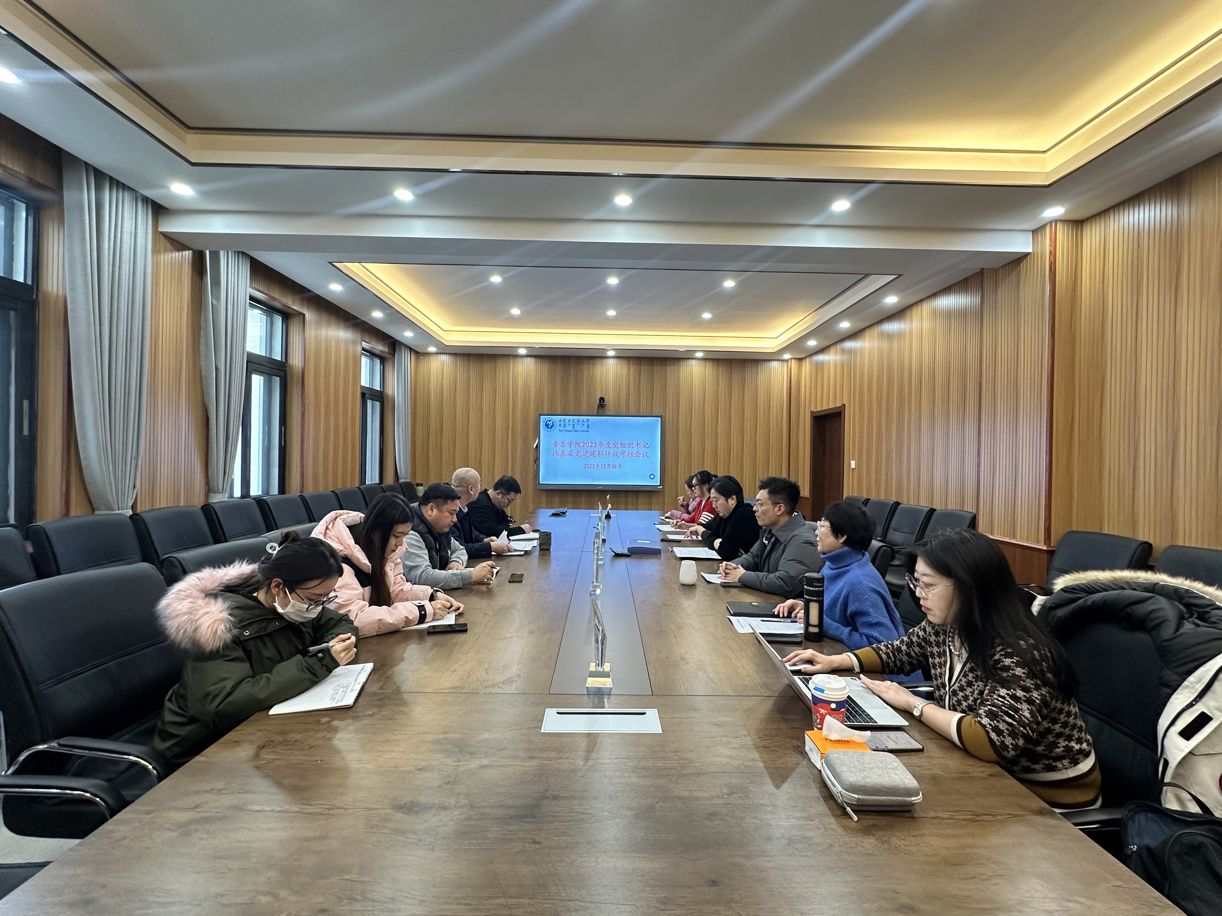 为认真贯彻落实党的二十大精神,推进全面从严治党向基层延伸,以铸牢中华民族共同体意识为主线,不断提高党的建设工作水平,按照工作要求,12月28日上午,音乐学院党委召开2023年度党组织书记抓基层党建述职评议考核会议。学院全体党委成员、各党支部书记及委员参加会议。会议由学院党委书记吴松林主持。