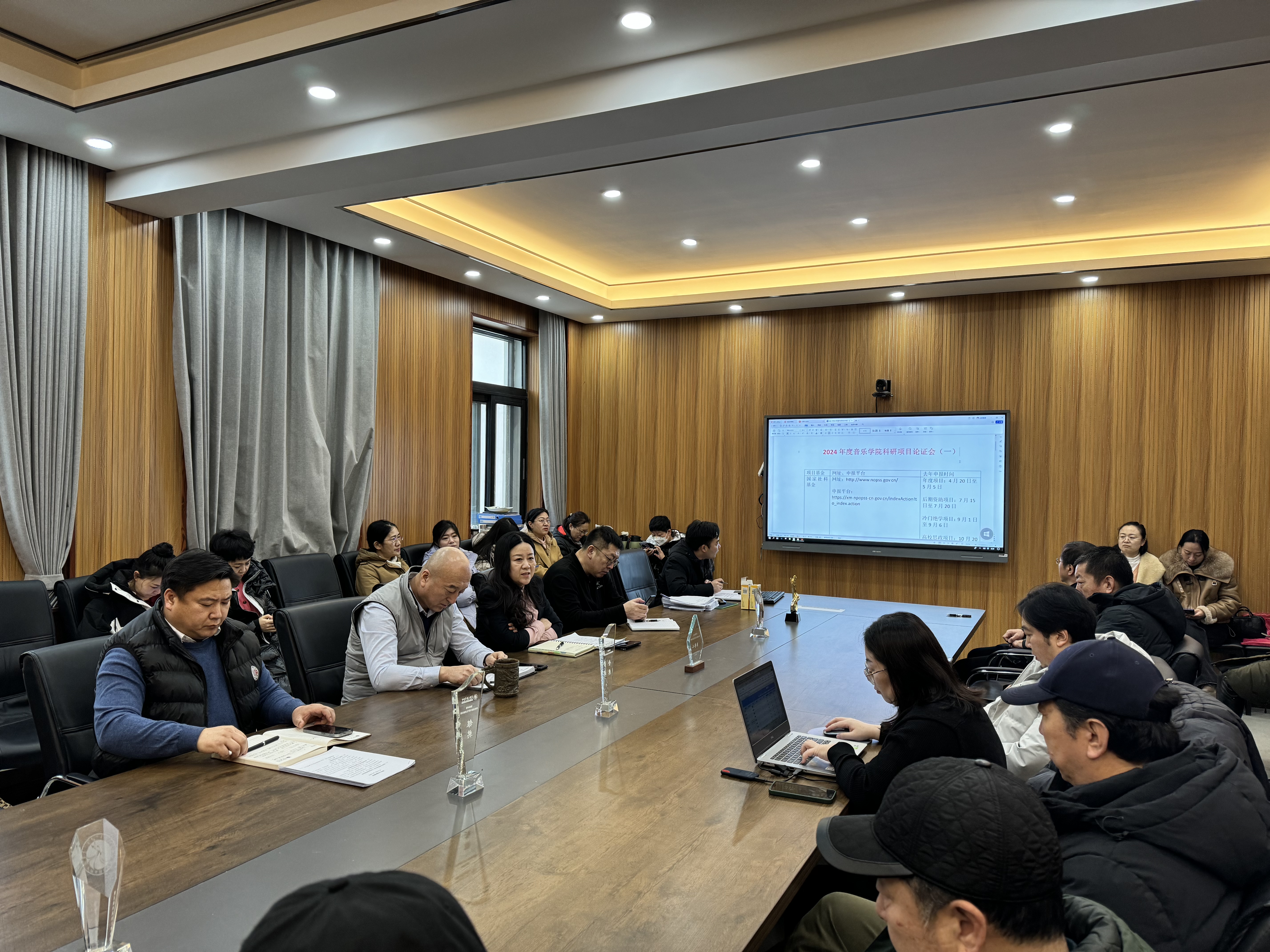 为进一步做好2024年国家社科基金等项目的申报工作,提升我院教师项目申报质量。音乐学院于2024年1月13日上午,在逸夫楼二楼会议室举办了2024年度科研项目论证会。由音乐学院赵伟晶院长主持召开,吴松林书记、董辉副书记、敖日格乐副院长,及全体教师参加了本次科研项目论证会。