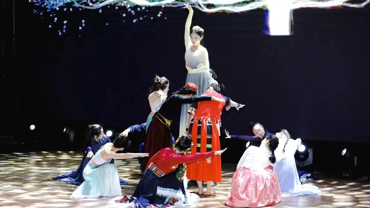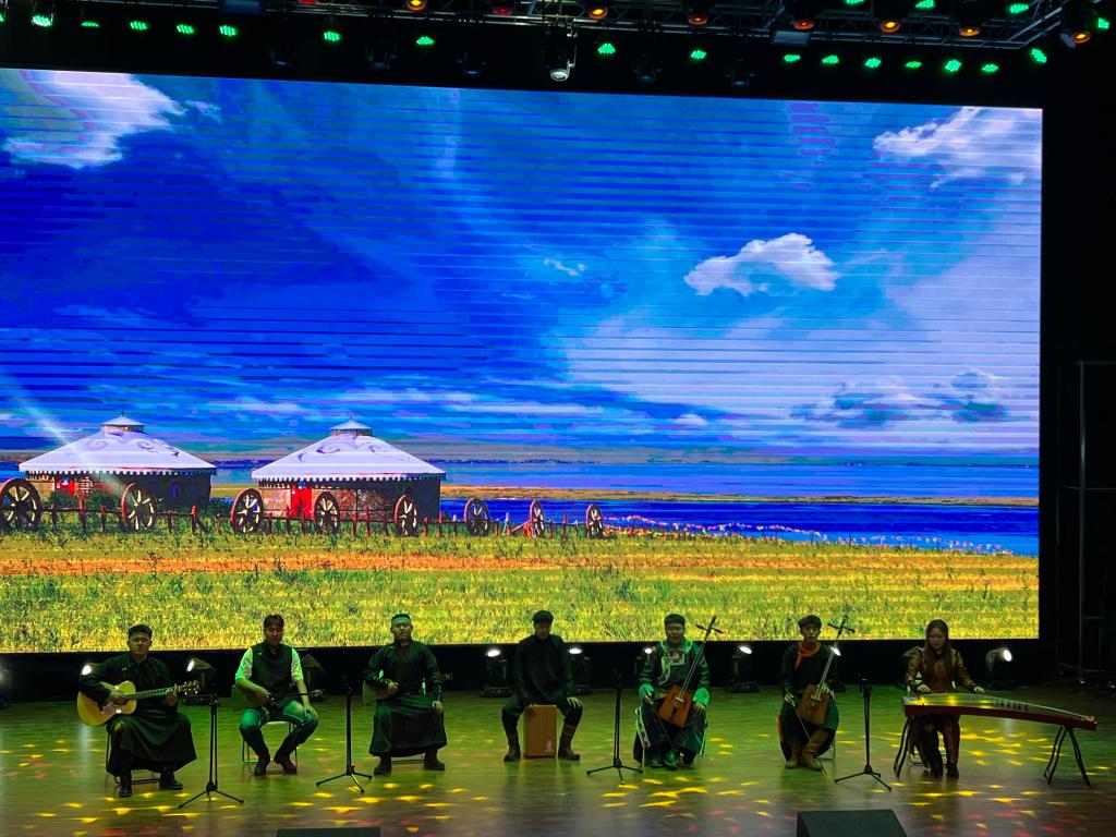 内蒙古民族大学音乐学院教师孟宪红老师、李留喜老师、王明旭老师分别演唱了《江山》《科尔沁骏马》《我们的祖国歌甜花香》,这不仅仅是歌声与旋律的传达,更是讲述民族交融的动人故事,见证青年力量的绚丽多彩的媒介。同时,内蒙古民族大学的学生们通过舞蹈、呼麦、马头琴齐奏等形式展现了音乐的多元性,带领观众们共同感受中华民族优秀音乐文化的意蕴。