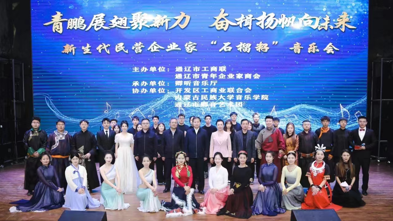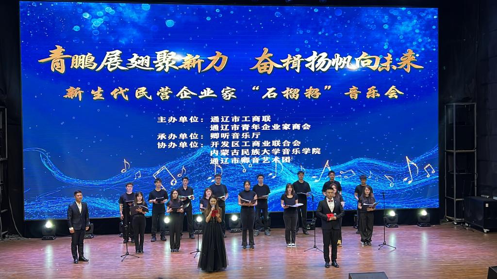 2024年4月30日,“青鹏展翅聚新力,奋楫扬帆向未来”新声代民营企业家“石榴籽”音乐会于卿听音乐厅成功举办。本场音乐会由通辽市工商联与青年企业家协会联袂呈现,内蒙古民族大学音乐学院筹备表演,演绎了十余个精彩节目。以歌声传播五四精神,以歌声铸牢中华民族共同体意识,旨在展现新时代青年企业家新形象、新作为。