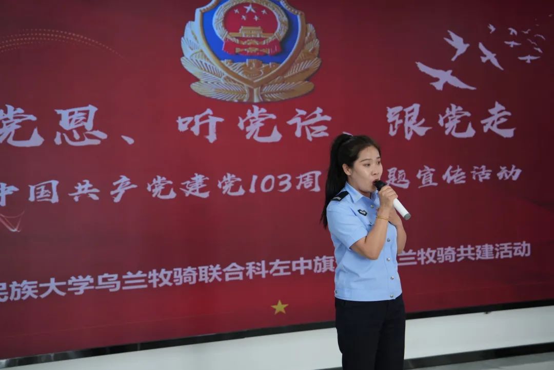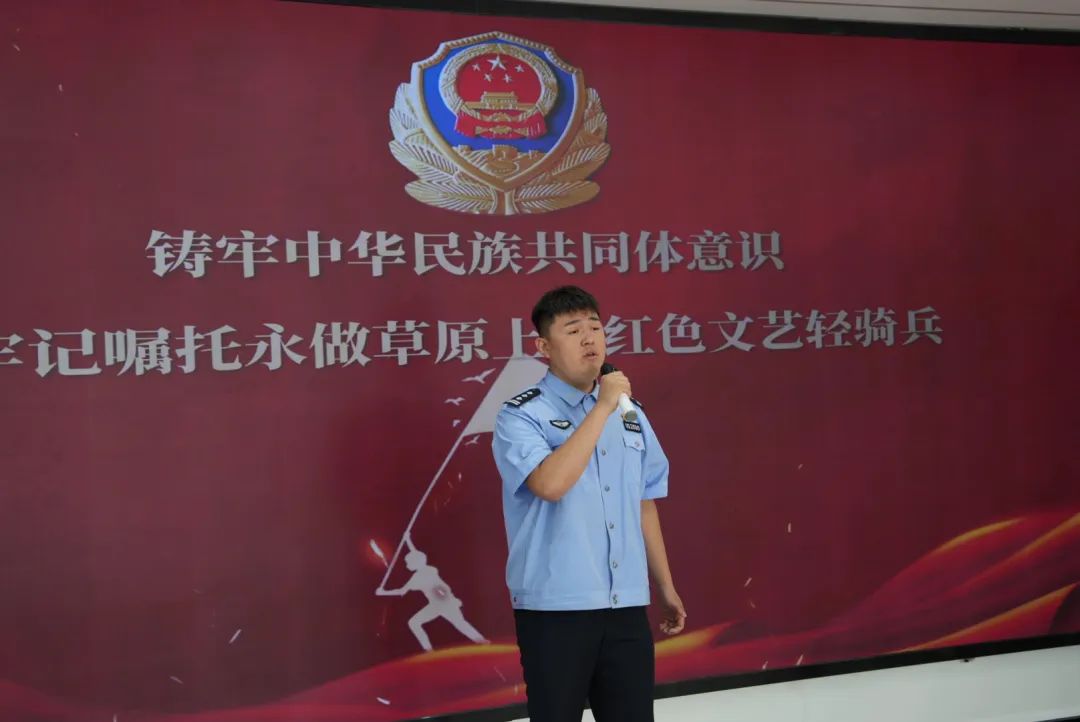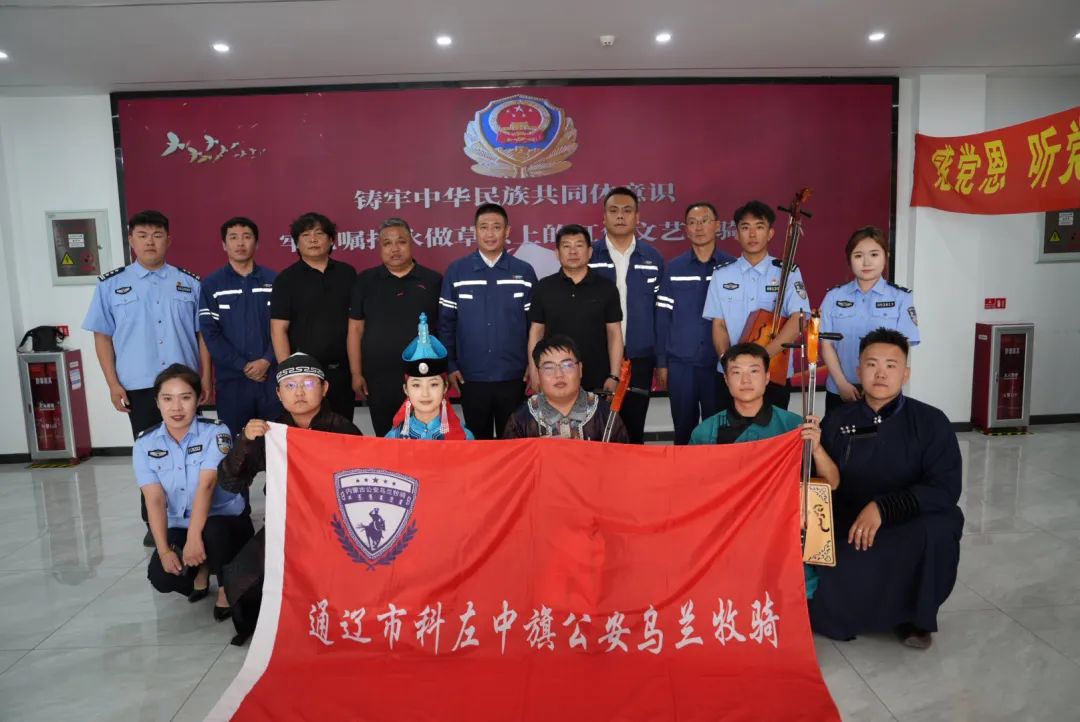 为铸牢中华民族共同体意识,大力弘扬北疆文化,6月22日,通辽市科左中旗公安乌兰牧骑与内蒙古民族大学乌兰牧骑再一次续写共建新篇章,以“感党恩、听党话、跟党走”庆祝中国共产党成立103周年主题宣传活动,前往舍伯吐镇20年“无访无诉无命案”的那仁嘎查、珠日河青格尔电力公司进行慰问演出。