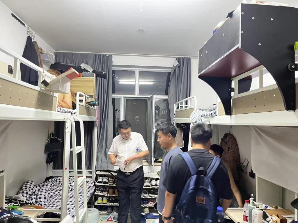 在走访过程中,领导团队一行逐一走访了每一间新生宿舍,与新生们面对面交流,询问他们入校后的适应情况、生活上的困难和需求,以及对学院教学、管理的意见和建议。学院领导不仅关心新生的物质生活条件,更关注他们的思想动态和心理状态。他们耐心倾听新生的心声,鼓励大家积极适应新环境,珍惜大学时光,努力学习专业知识,积极参与校园文化活动,全面提升自己的综合素质。辅导员和班主任老师们也借此机会与新生们建立了更加紧密的联系。他们详细了解了新生的兴趣爱好、特长优势及未来规划,并为他们提供了个性化的指导和建议。同时,老师们还向新生们介绍了学院的相关规章制度和注意事项,帮助他们更快地融入大学生活。
