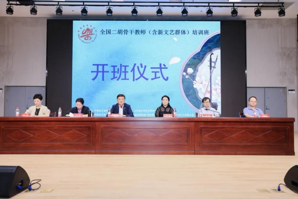 中国音协分党组书记、驻会副主席兼秘书长韩新安,胡琴演奏家、中国音协副主席、中国音协民族弓弦乐学会会长宋飞,中国文联出版社党委委员、副社长程翔云,江苏省音协主席杜小甦,江苏省音协副主席、副秘书长赵彤等出席开班仪式。中国音协分党组成员、副秘书长、一级巡视员王宏主持开班仪式。