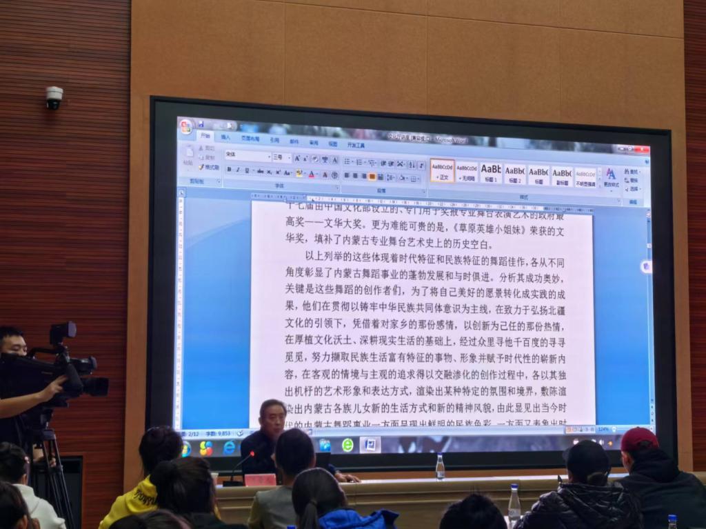 讲座邀请了内蒙古自治区著名舞蹈理论家、国家一级艺术评论及研究员王景志先生。他以《厚植文化沃土深耕现实生活》为题,为在场的市及各旗县市区乌兰牧骑舞蹈编创人员、市舞蹈家协会相关负责人以及我院学生带来了一场精彩的讲座。