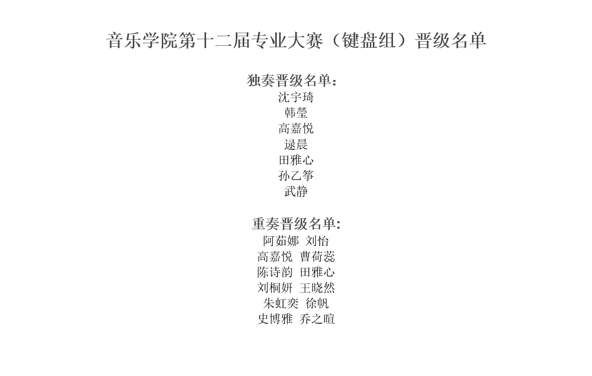 为庆祝中华人民共和国成立75周年,进一步推动我校高等教育高质量发展,落实立德树人的根本任务,切实提高学生专业技能水平和舞台实践能力不断提升,营造积极向上的校园文化氛围,彰显时代精神,激发青春活力。11月8日“唱响民大,舞动青春”——音乐学院第十二届专业大赛(键盘组)初赛在逸夫楼排练厅隆重开赛。此次大赛(键盘组)共计报名20余人,包含钢琴,手风琴两种乐器门类。经过选手们的激烈角逐,最终评选出12位优胜者进入决赛。决赛暂定12月初进行,让我们继续关注他们的精彩表现吧!