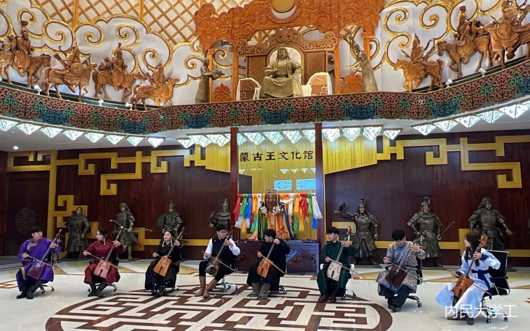 从原料筛选、发酵过程监控到蒸馏与调配,同学们参观车间过程中,深入了解了酿酒传统工艺背后的艰辛与智慧,更体会到了劳动的价值与意义。文化馆中陈列的酿酒器具、呈现的酒文化发展历程与家乡独特的文化历史深深吸引了在场的同学。受环境感染,同学们在文化馆的舞台上,尽情显示专业技能,一曲悠扬的马头琴独奏,一段充满民族风情的舞蹈,一曲震撼人心的呼麦表演,仿佛穿越时空,与家乡的历史与文化进行了一次亲密的对话。