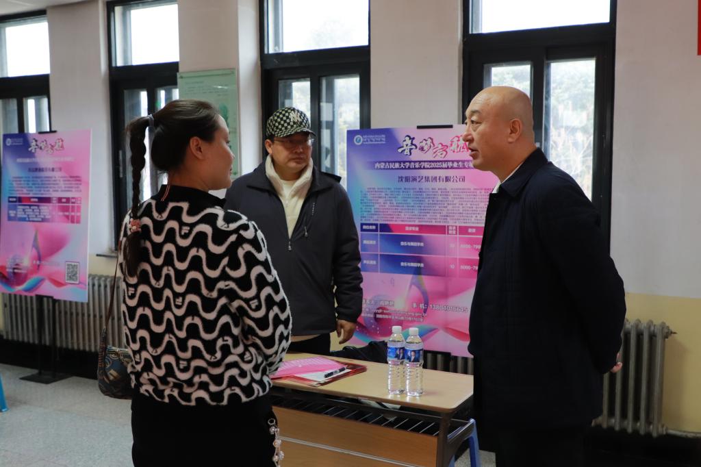 2024年11月15日,沈阳演艺集团专场招聘会再次在内蒙古民族大学音乐学院成功举办,标志着双方合作的进一步深化。此次招聘会不仅为即将毕业的学子们提供了一个宝贵的就业机会,也再次确认了沈阳演艺集团与内蒙古民族大学音乐学院之间的良好合作关系。