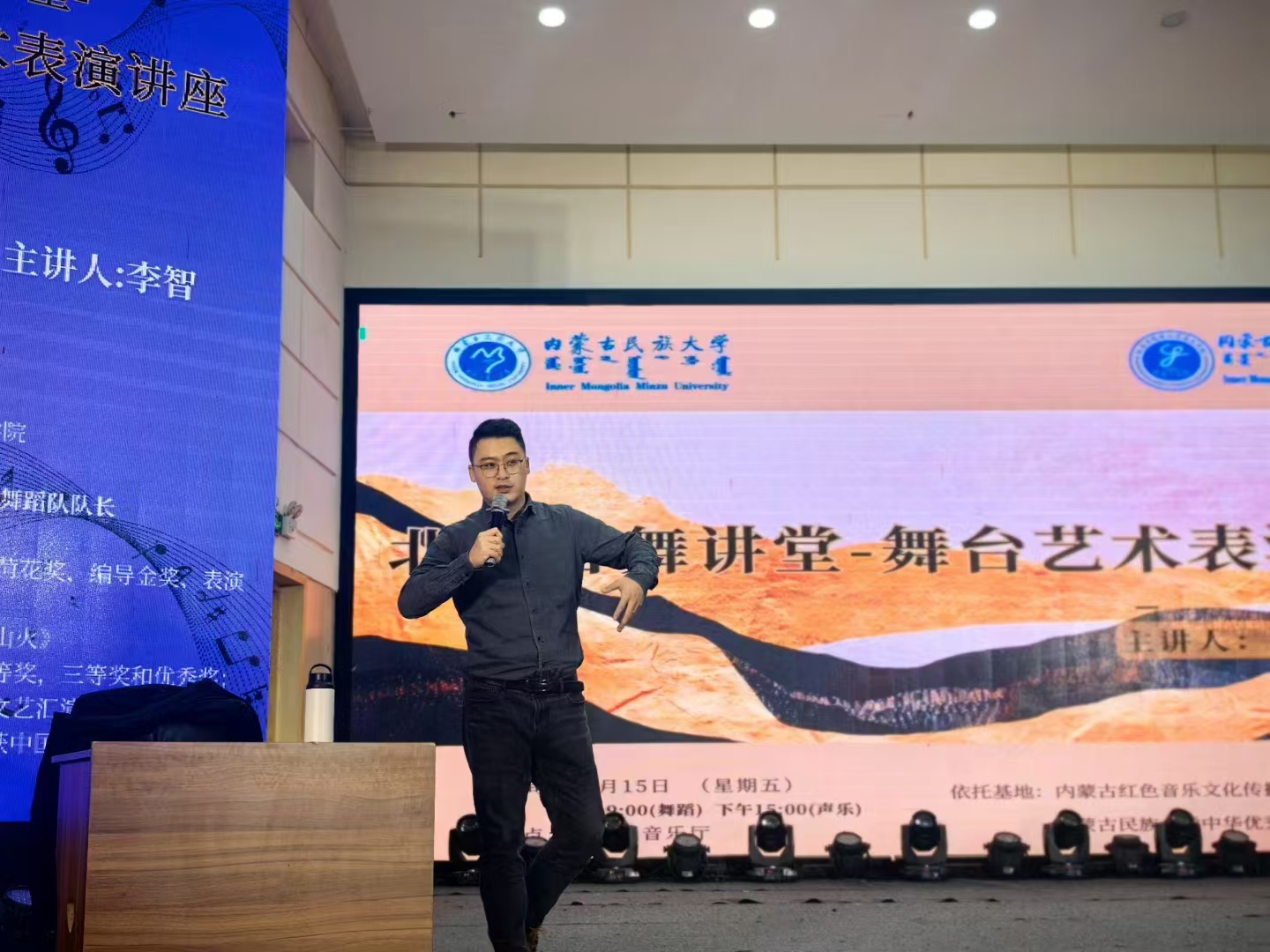 2024年11月15日上午9时,学院音乐厅内座无虚席,北疆音舞讲堂迎来了一场别开生面的讲座。本次讲座有幸邀请到了国家一级演员、现任中国铁路文工团歌舞团舞蹈队队长李智老师,他以“舞台艺术对于舞蹈表演的重要性”为题,为师生们带来了一场精彩的分享。