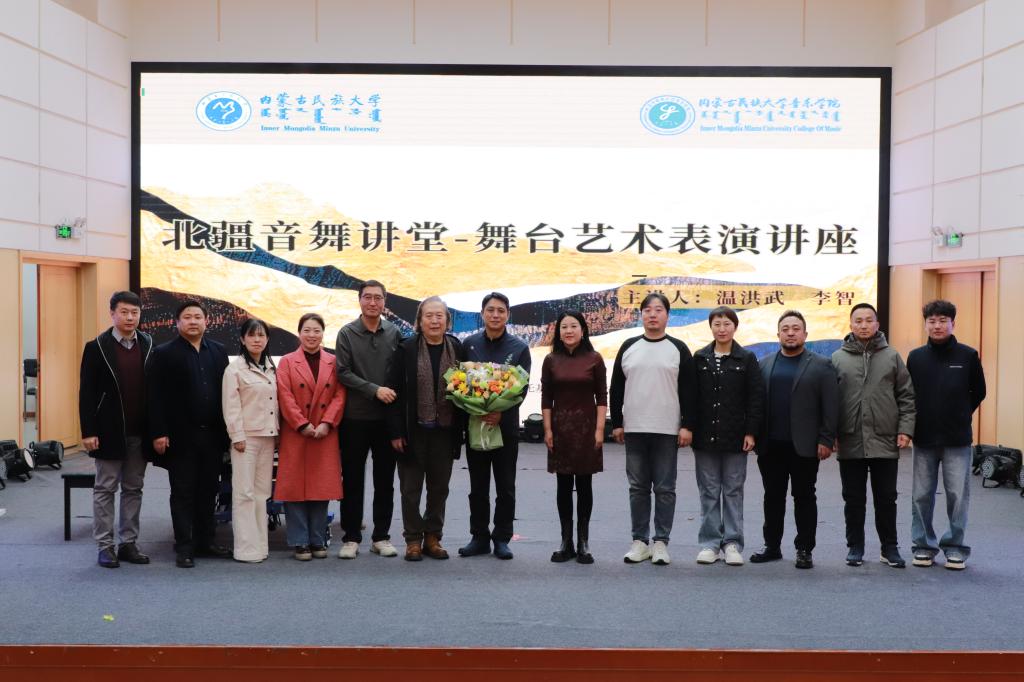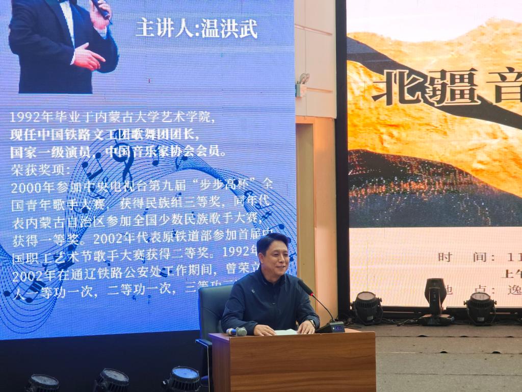 2024年11月15日,北疆音舞讲堂在逸夫楼音乐厅迎来了一场精彩的舞台艺术表演讲座。本次讲座由音乐学院特别邀请到中国铁路文工团歌舞团团长、国家一级演员、中国音乐家协会会员温洪武担任主讲人,为现场师生带来了一场艺术与人生交织的视听盛宴。