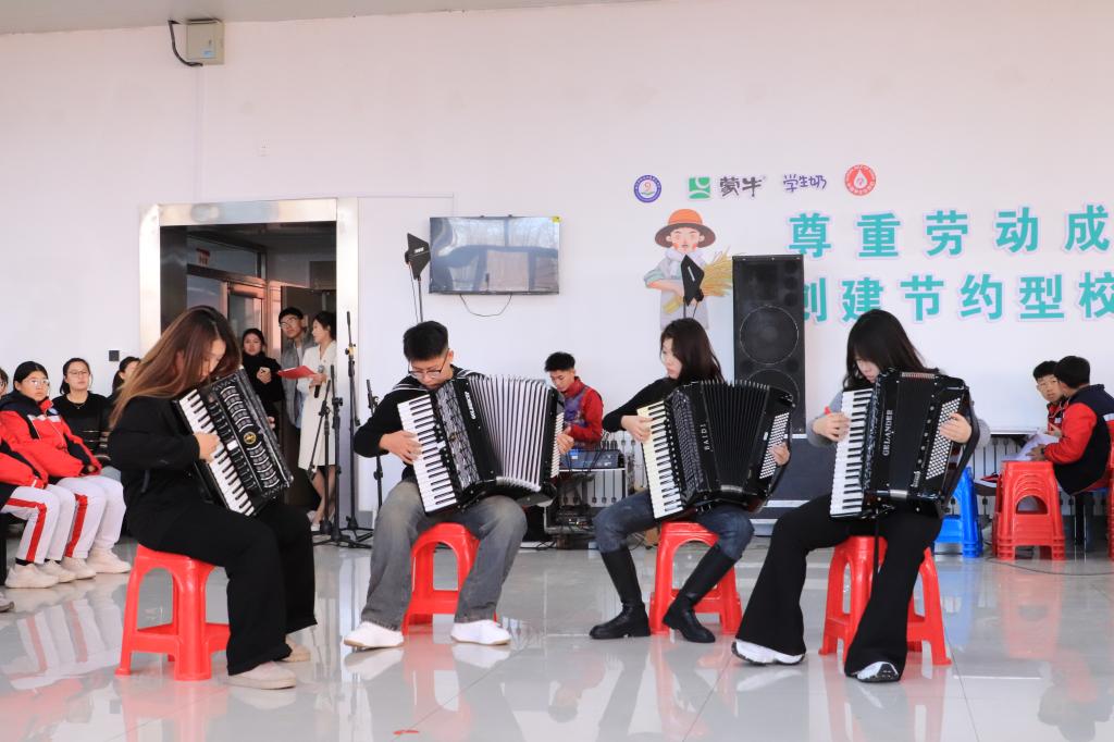 在活动中,音乐学院的学生们充分发挥其专业特长,为第九中学高一学子们献上了一场精彩的演出。悠扬动听的乐器独奏,深情并茂的声乐表演,同学们用音乐传递对青春的回忆和未来的憧憬,充分展现了音乐学院学生们的专业素养与青春活力。这些节目不仅传递了劳动创造美好生活的积极理念,还激发了学生们对艺术和劳动的双重热爱。