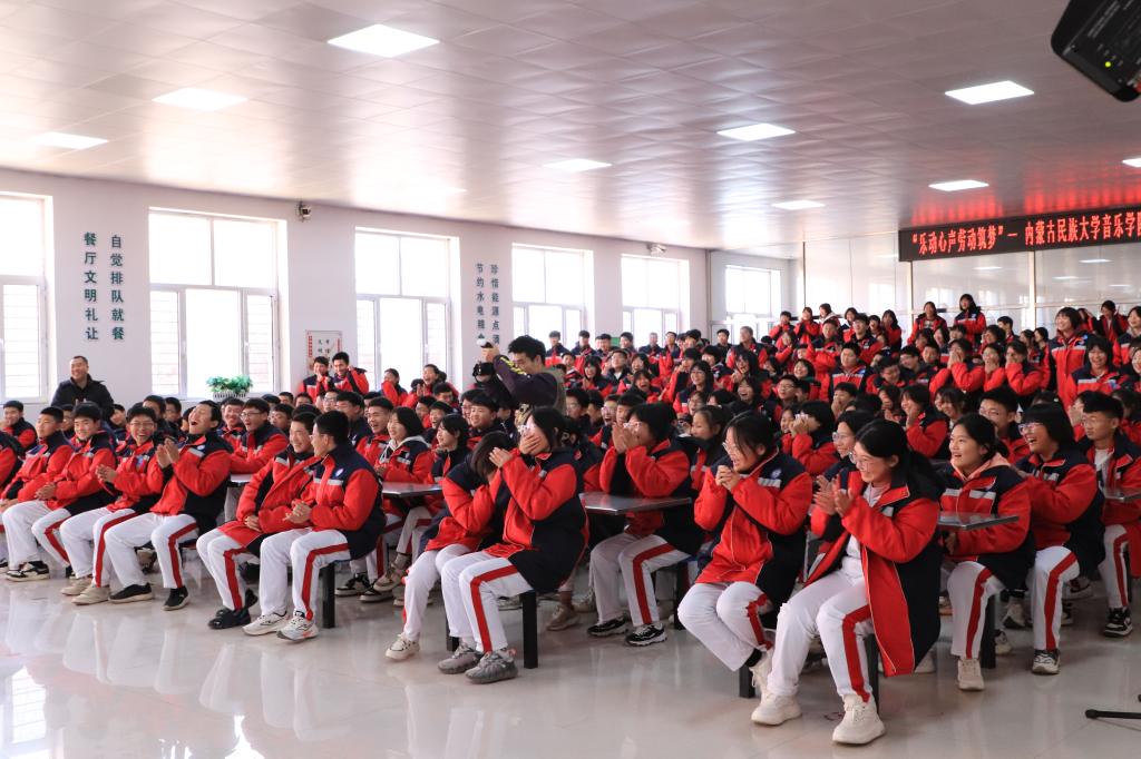11月17日上午,内蒙古民族大学音乐学院在通辽市第九中学开展了一场热烈的劳动教育实践活动。音乐学院的师生们怀着满腔热忱与专业技艺,与第九中学的师生们共同绘制了一幅青春与劳动交织的美好画卷,并在此基础上达成了初步的深度合作意向,开启了劳动教育合作的新纪元。