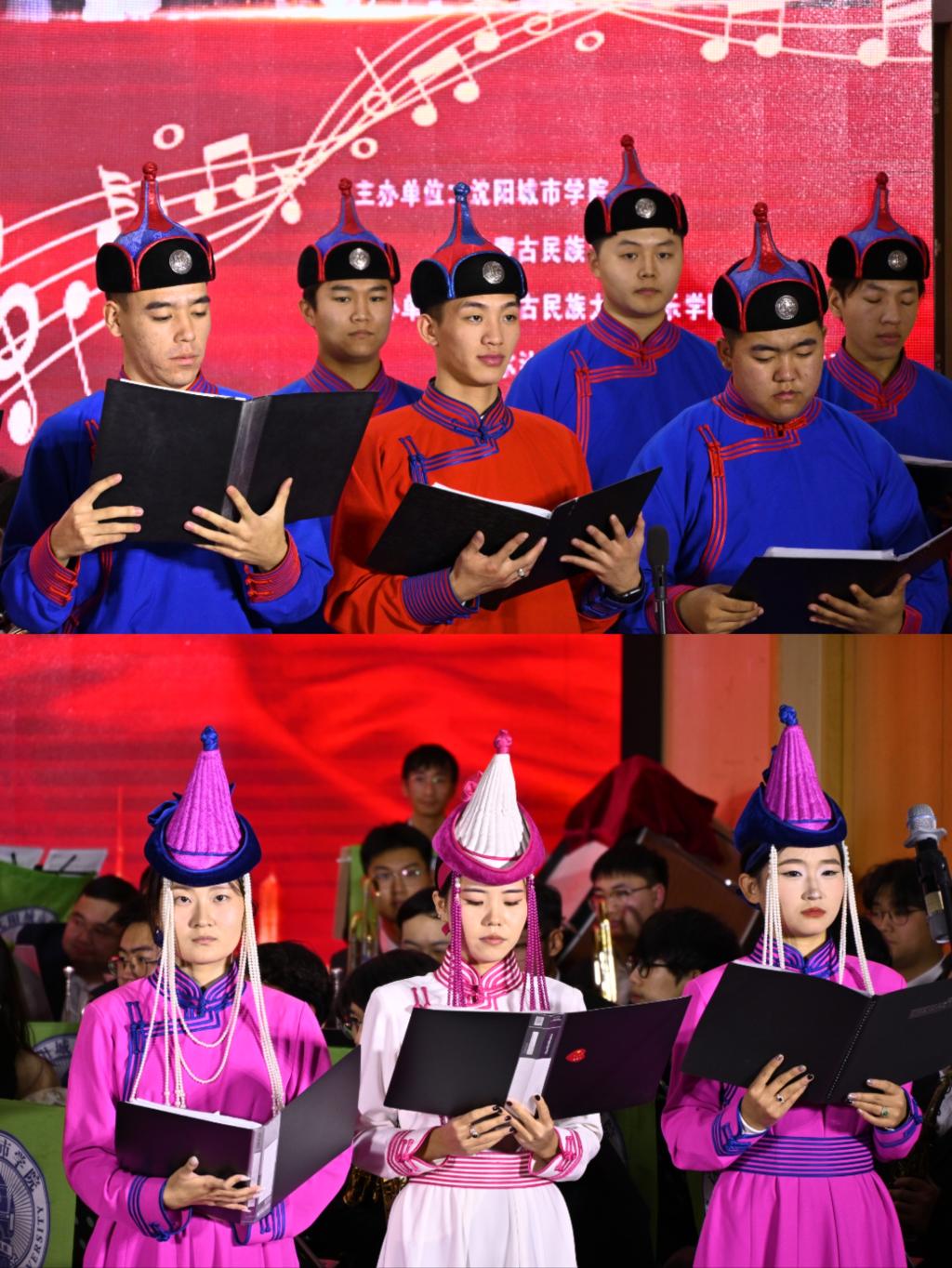 音乐会还加演了内蒙古民族大学温泽教授改编科尔沁民歌《四海》,《万莉与昙花》两部合奏作品,由沈阳城市学院交响管乐团与内蒙古民族大学《科尔沁之声》无伴奏合唱团联合演出,沈阳城市学院管弦乐团指挥姜巍教授还为温泽教授颁发了乐团艺术指导聘书,至此把音乐会推向高潮,这不仅加深了两校师生间的友谊,更加升华了“共筑中国梦、同唱一首歌”美好愿望,也是加强爱国主义教育、是铸牢中华民族共同体意识的一次具体实践。音乐会在全体演职人员与全场观众齐唱《我和我的祖国》的歌声中结束。