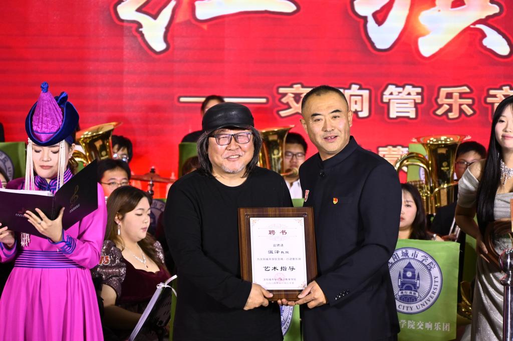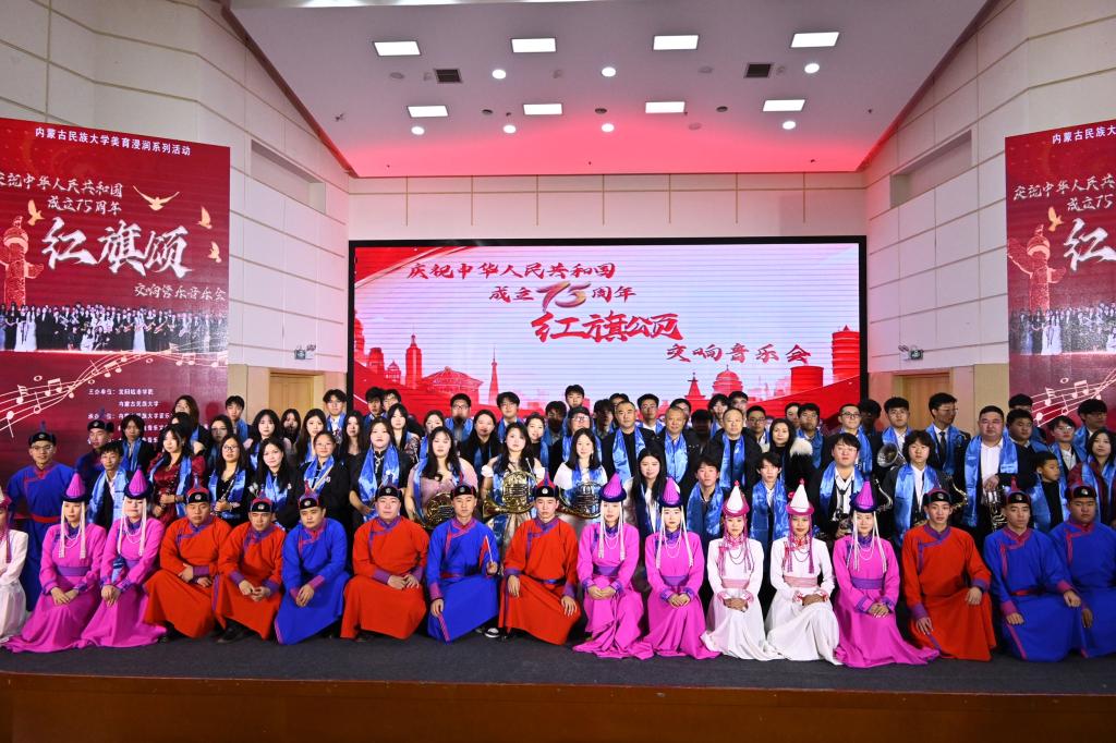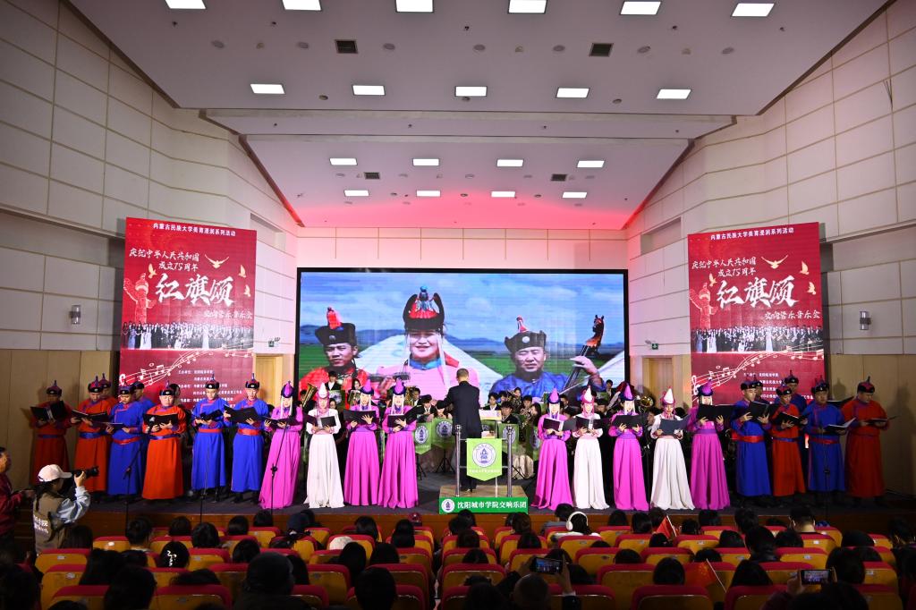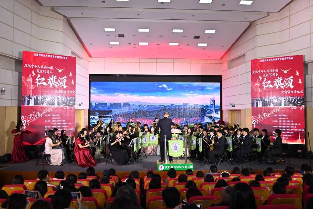 11月30日,由沈阳城市学院与内蒙古民族大学联合主办的“美育浸润系列活动”大型交响管乐音乐会《红旗颂》在内蒙古民族大学举行。本次活动旨在通过多元化的艺术形式,推动美育教育在校园的深入发展,提升学生的审美素养和人文素养。本次活动由内蒙古民族大学音乐学院、科尔沁传统音乐文化美育名师工作室,以及科尔沁音乐文化教育传承基地承办。依托内蒙古红色音乐文化传播基地、内蒙古民族大学中华优秀传统文化传播基地。教务处处长王泰出席本次活动。