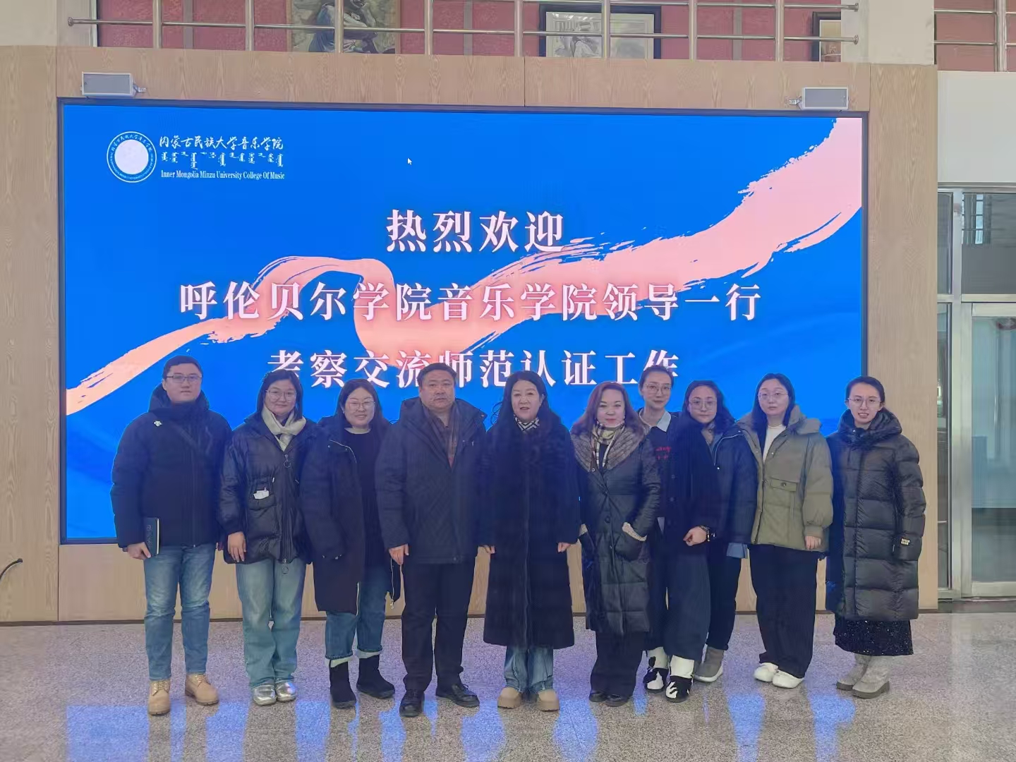 呼伦贝尔学院音乐学院一行人员来我院开展音乐学师范专业认证考察交流,充分说明了我校音乐学专业建设水平不断提高,社会影响力不断扩大。本次考察交流既加强了我院兄弟院校的沟通联系,也提升了我校音乐学专业在全区的影响力。