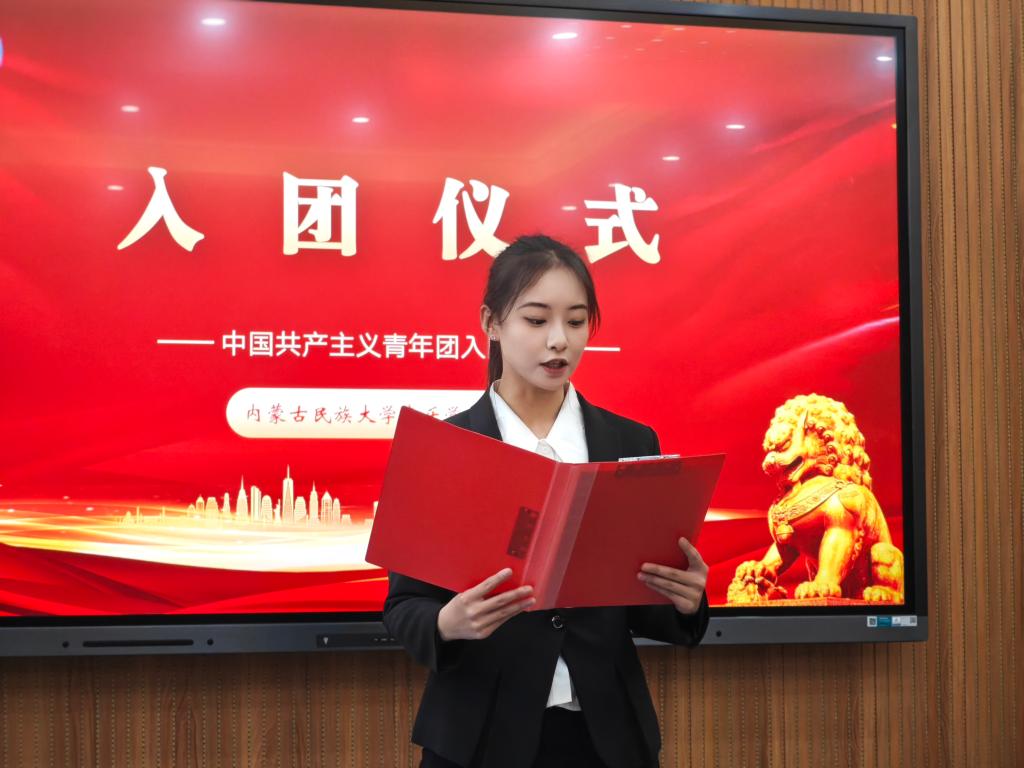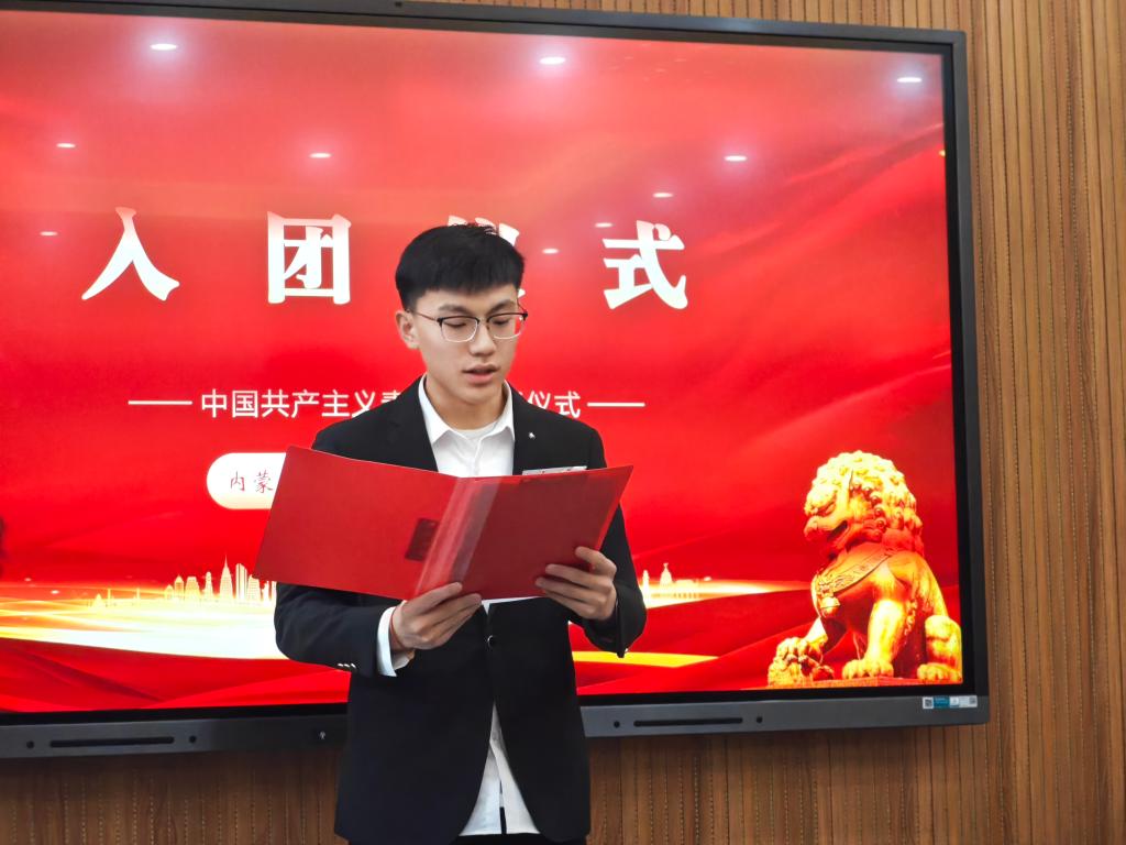 团总支素质拓展部部长刘海鹏带领全体新团员进行了庄严的宣誓。誓言声声,表达了新团员们对团组织的忠诚与对共产主义事业的坚定信念。