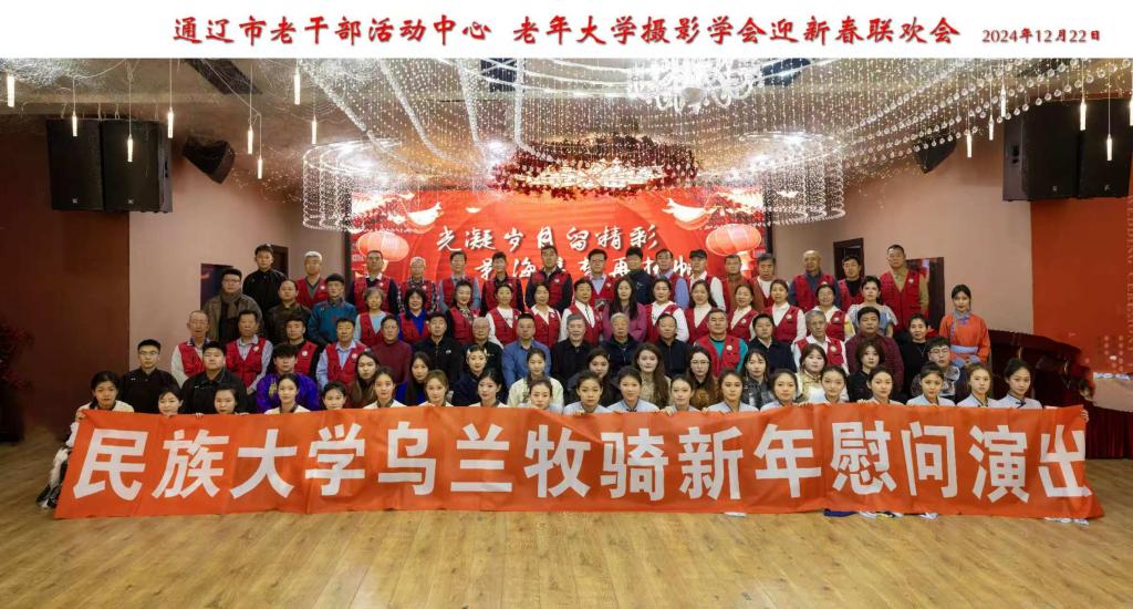 为了慰问老年大学摄影师协会,内蒙古民族大学音乐学院乌兰牧骑在2024年12月22日以表演的形式不仅传递了新年前夕的温暖,为老年大学增添一份别样的新年祝福,而且继续传递了乌兰牧骑文化。音乐学院乌兰牧骑艺术团带着满腔的热情与精湛的技艺,走进了老年大学摄影协会,为其带来了一场别开生面的慰问演出。