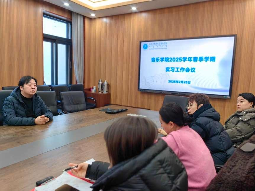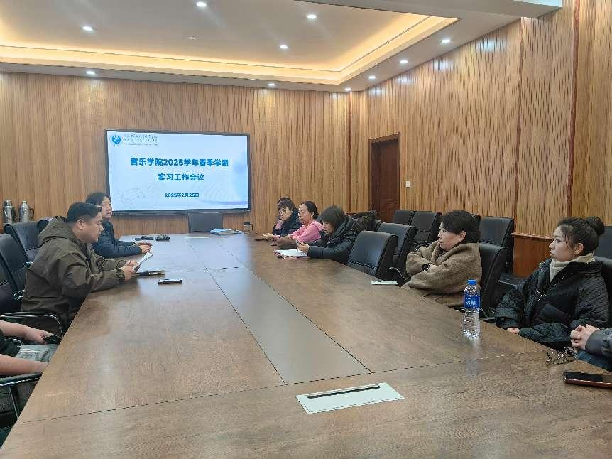 2025年2月25日下午,音乐学院召开2025年春季学期实习工作会议,会议由敖日格乐副院长主持,实习带队指导教师出席此次会议。