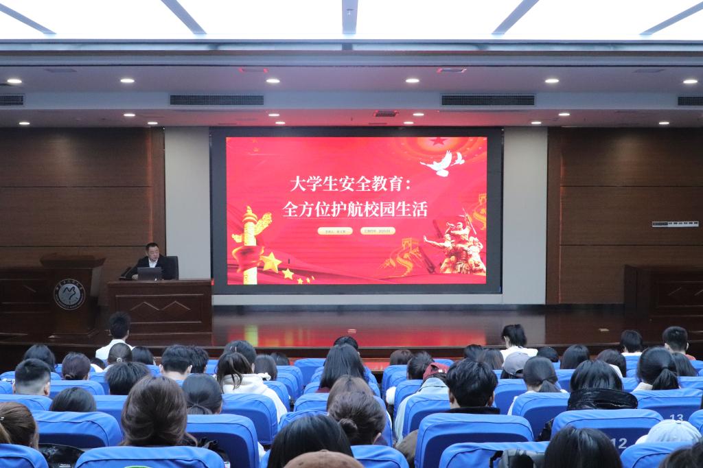 主讲人秦文智老师以“大学生安全教育:全方位护航校园生活”为题为现场的180余名同学讲解了国家安全、校园安全、食品安全、交通安全、网络安全等各类安全知识。
