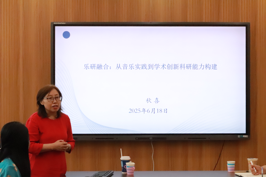 秋喜处长的讲座以“乐研融合:从音乐实践到学术创新的科研能力构建”为核心,从跨学科科研创新路径、多维度研究内容、研究方法与学术实践、科研诚信与伦理坚守四大维度系统展开。