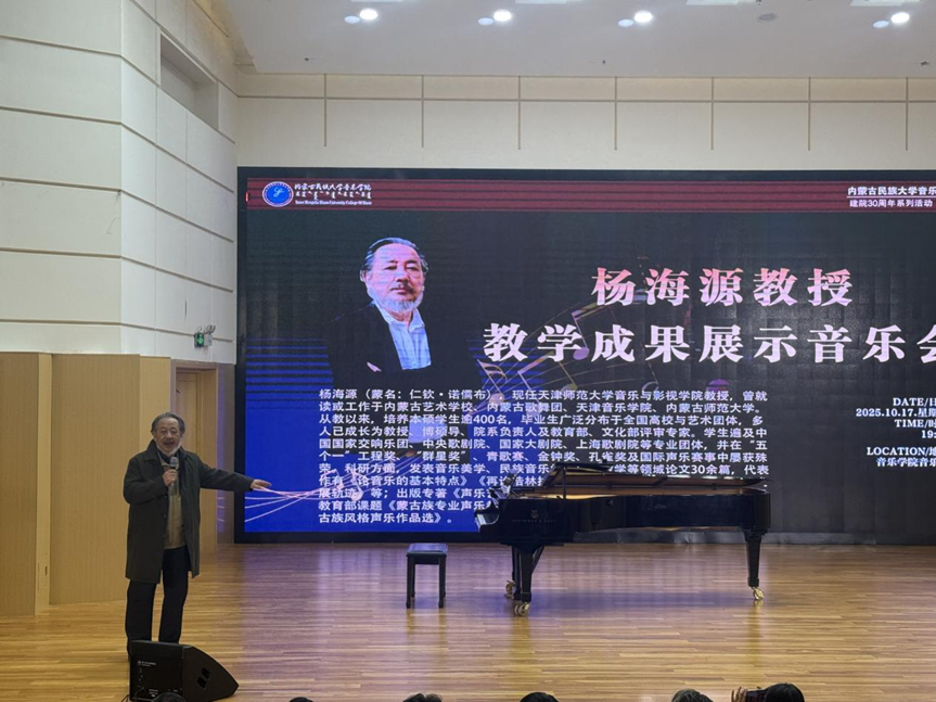 作为内蒙古民族大学音乐学院建院30周年系列活动的重要组成部分,杨海源教授的此次讲学不仅为师生搭建了高端的专业交流平台,更以深厚的音乐情怀与精湛的教学水平,为学院声乐教学注入了新思想、新动能。未来,学院将继续广纳贤才,邀请更多国内外知名专家学者来访讲学,不断注入优质学术资源,共同谱写新时代音乐艺术教育发展的崭新篇章。