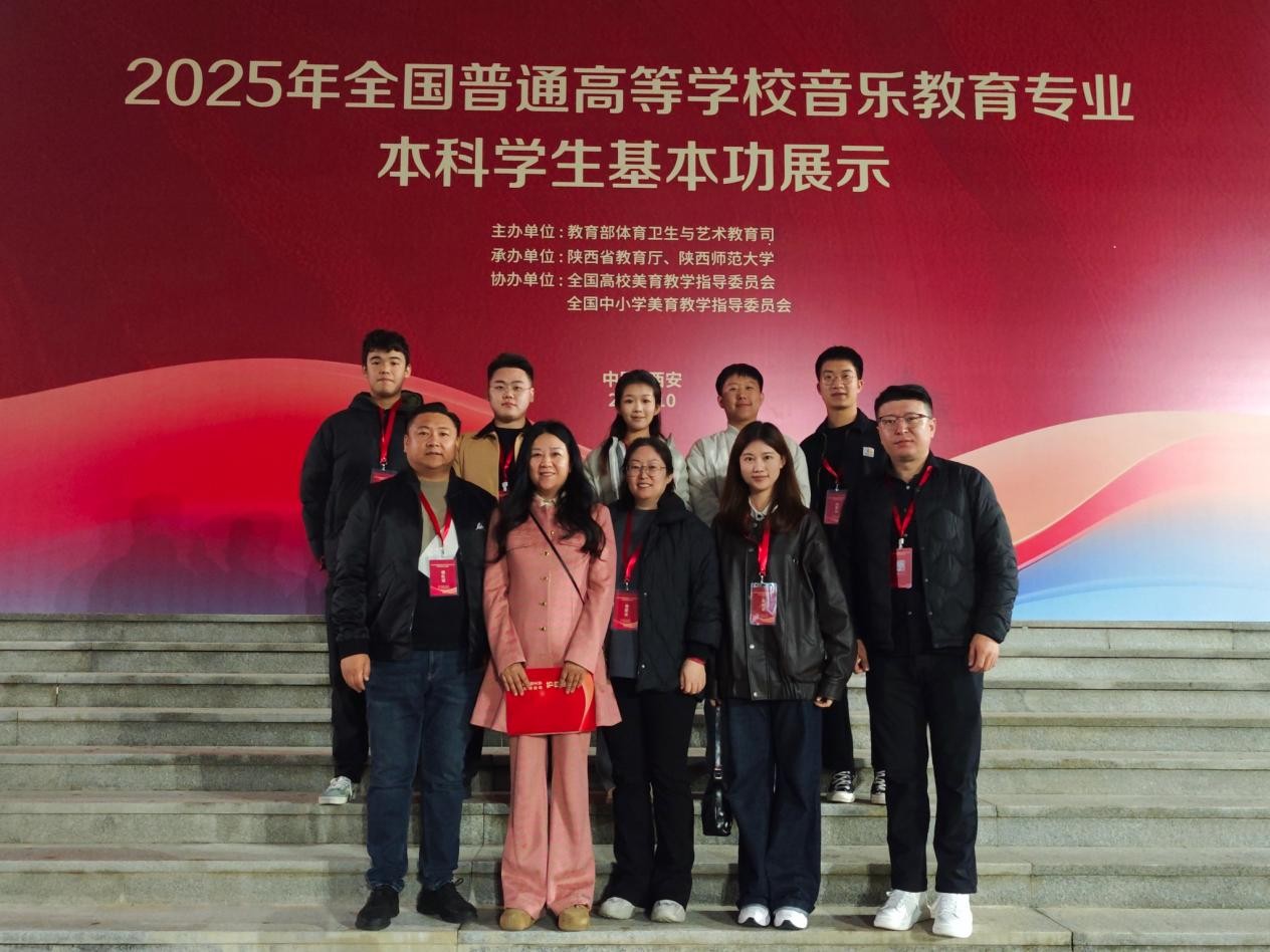 为充分展示我院音乐教育专业的教学成果与育人水平,加强与全国普通高等学校的交流学习,2025年10月25日,作为内蒙古自治区三所高校代表之一,内蒙古民族大学音乐学院副院长敖日格乐率队,带领由三名本科学生和一名青年教师组成的师生代表队,参加教育部举办的2025年全国普通高等学校音乐教育专业本科学生基本功展示比赛。我校音乐学院院长赵伟晶教授担任大赛评委。