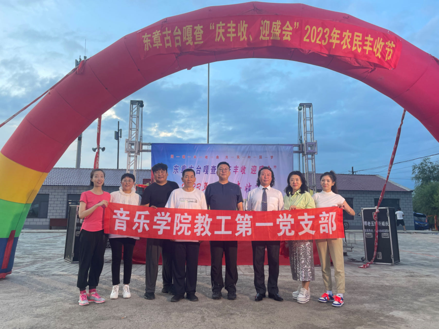 本次活动由内蒙古民族大学音乐学院副院长耿学刚教授、党委副书记董辉带队,音乐学院教工第一党支部组织党员代表包那日苏、徐颖,苏都毕力格;音乐学院教工第二党支部组织党员代表曹丽艳;舞蹈教研室教师代表甜甜、白佳妮;学院乌兰牧骑实践中心主任包那日苏带领20级音乐表演2班英明、威力斯、佟智钢等学生联合参与,于8月11日走进通辽市科尔沁左翼中旗舍伯吐镇东章古台嘎查,开展社会实践活动。