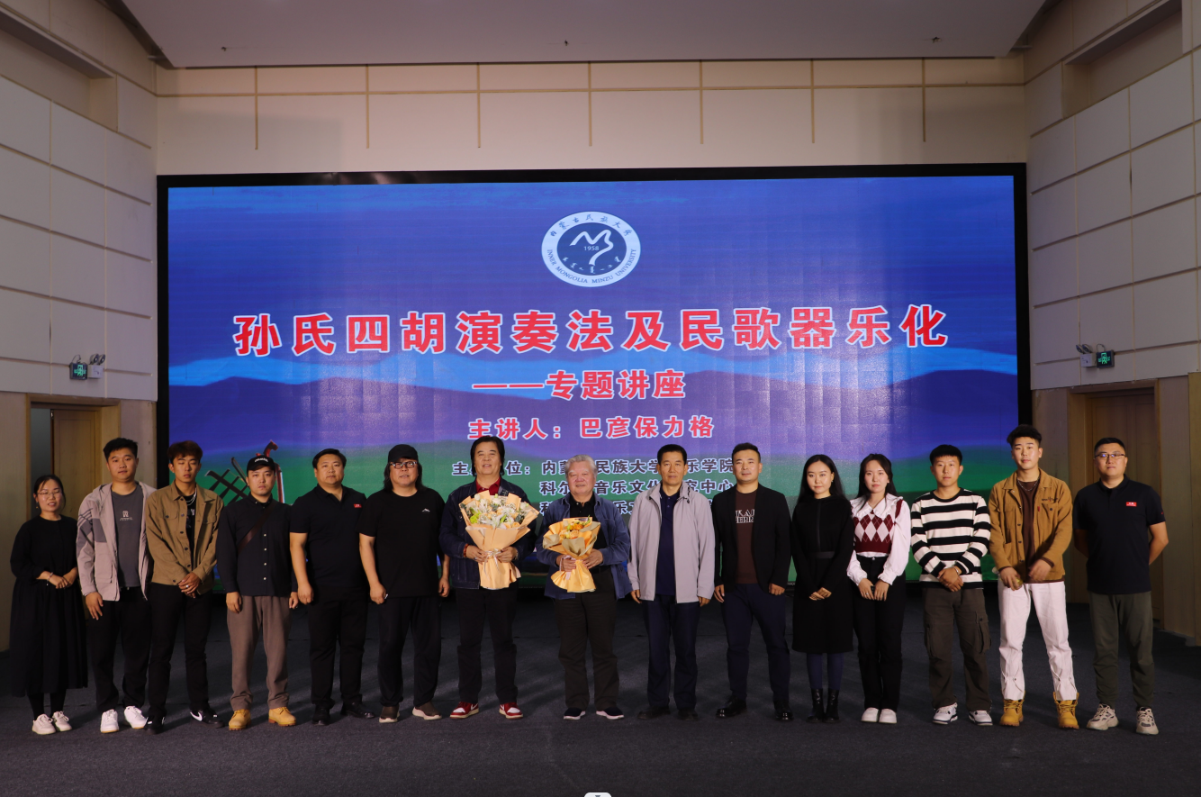 9月20日晚19:00,国家非物质文化遗产蒙古族四胡音乐代表性传承人、中央民族大学客座教授、内蒙古民族大学音乐学院客座教授巴彦保力格受邀来我院作关于“孙氏四胡演奏法及民歌器乐化”专题讲座,为广大师生带来了一场别开生面的四胡音乐盛典。