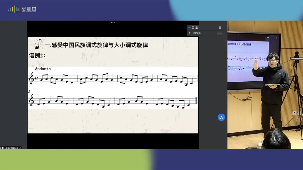 基本乐理作为学习音乐的必修入门课程,是音乐道路上的重要基石。本学期的授课主题为“民族调式”,任伟鑫老师带着自己独特的手势教学法,耐心细致且热情幽默的课堂,让我们收获满满。通过同步课堂与四川师范大学师生的实时互动,双方师生受益匪浅,做到了教学相长,有效地提高了教学质量和效果。连续两个学期的同步合作,非常感谢任老师的用心讲授和无私付出。