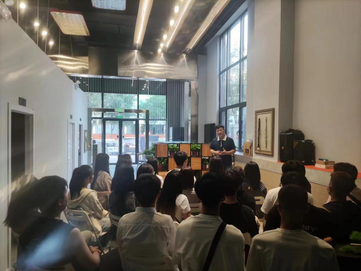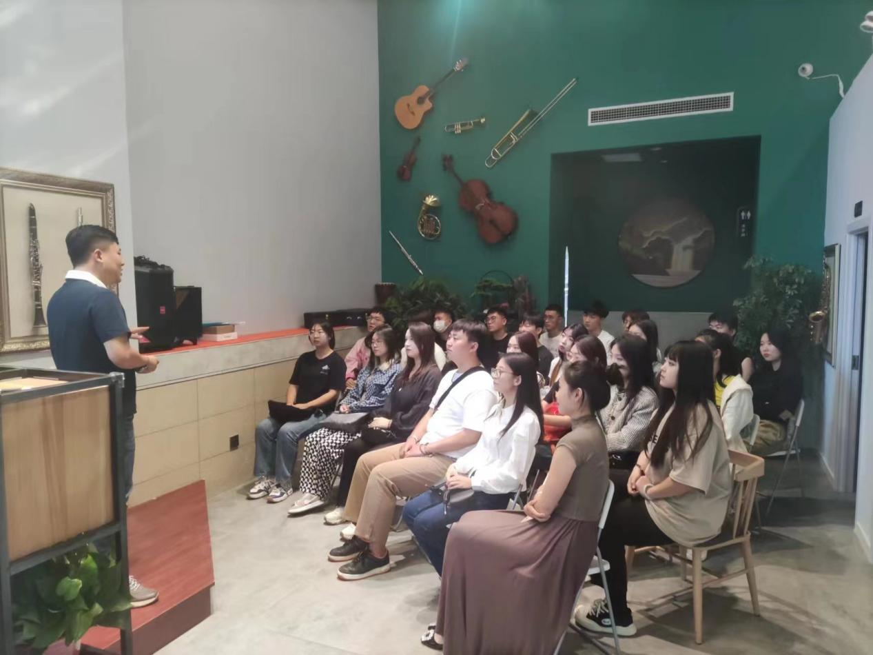 内蒙古民族大学音乐学院2020级音乐表演专业实习生于2023年9月4日下午15:00在卿音艺术集合,卿听音乐厅创始人李凤一先生给实习生们上了实习第一课,内容包括卿听音乐厅项目建设情况、音乐表演专业学生的就业前景、营业性演出相关政策概况、演出流程分工介绍等等。