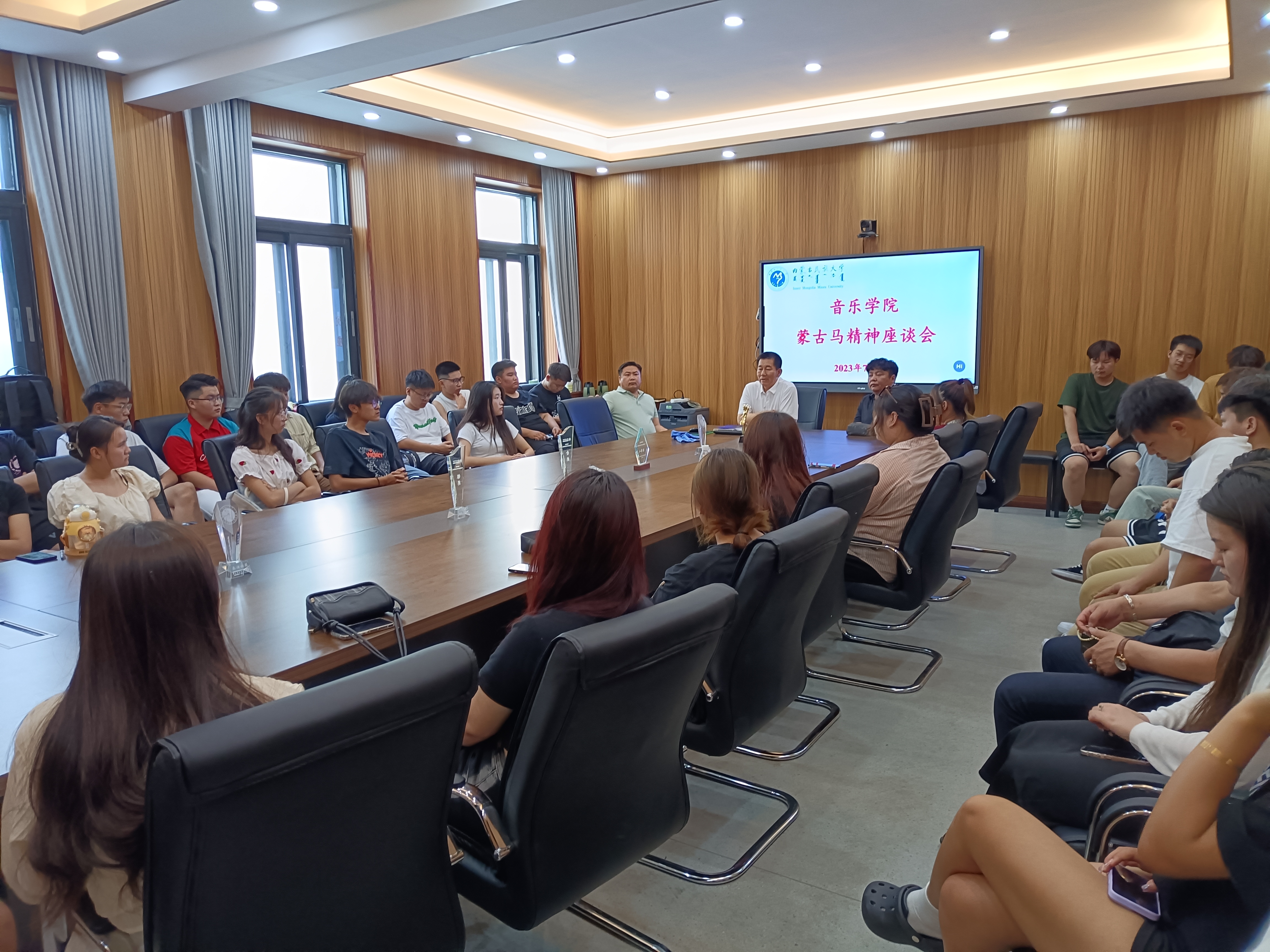 今年是习近平总书记提出“蒙古马精神”五周年,为了更好地传承与发扬“蒙古马精神”,音乐学院于2023年7月7日在西拉木伦校区逸夫楼229会议室召开座谈会。音乐学院副院长(主持工作)耿学刚教授、副院长敖日格乐博士、乌兰牧骑中心包那日苏主任以及62名学生代表参加座谈。