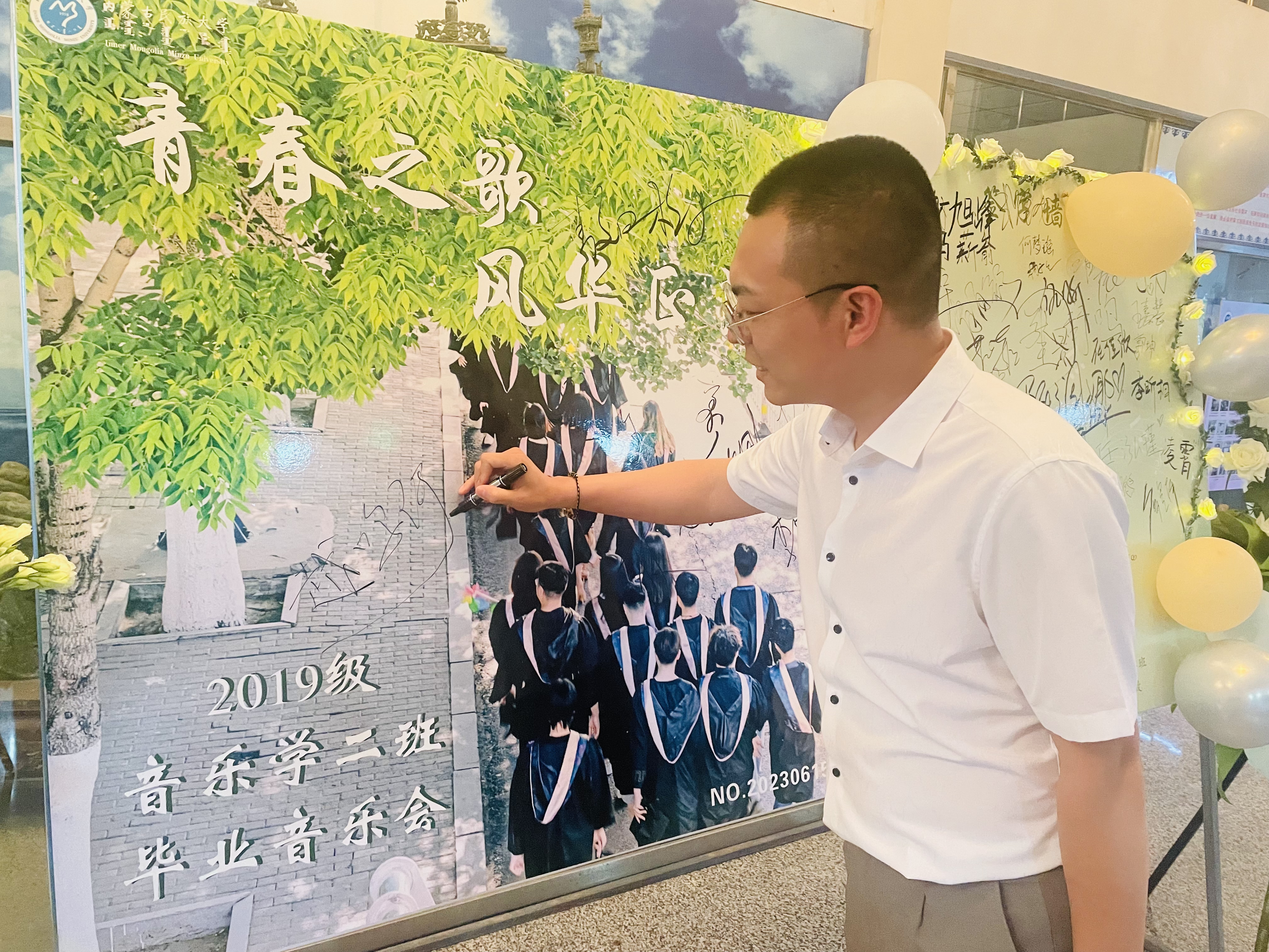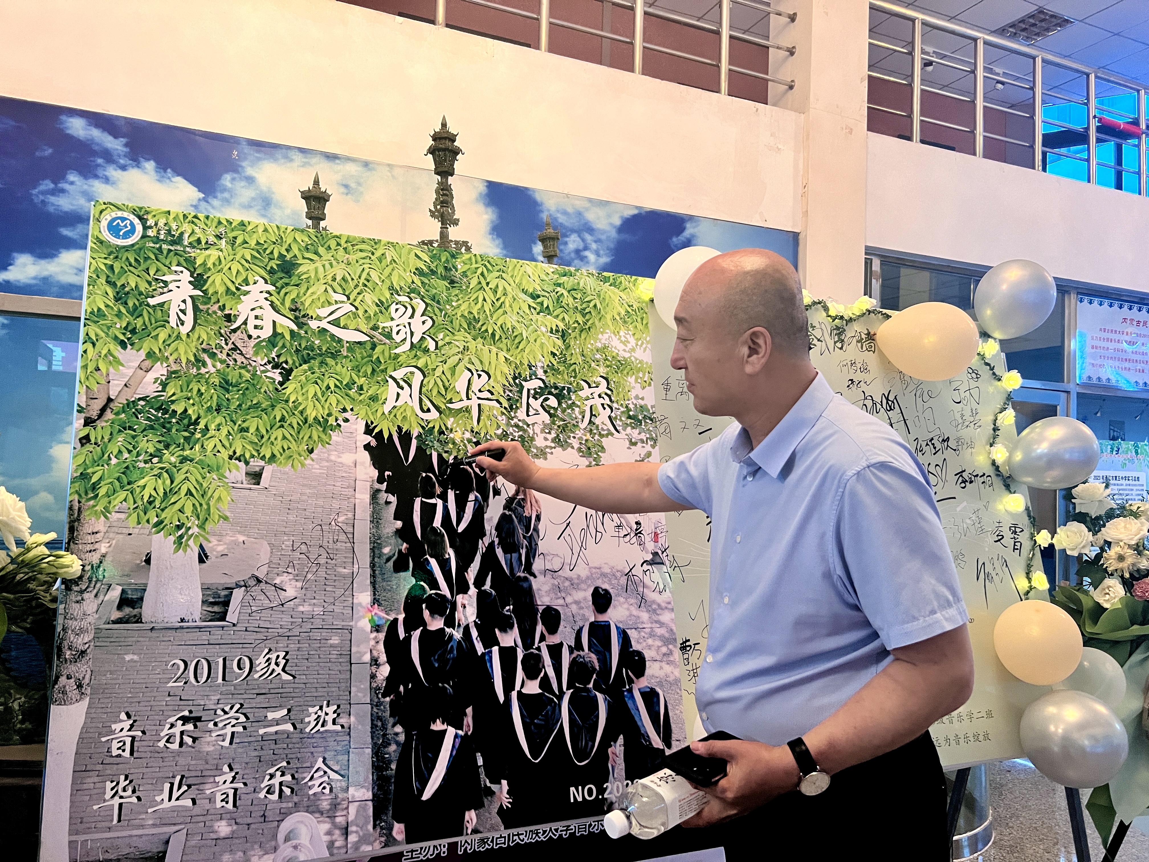 音乐学院2019级音乐学2班于6月15日举办“青春之歌,风华正茂”主题毕业音乐会,音乐学院党委书记吴松林、音乐学院副院长(主持工作)耿学刚、副院长敖日格乐、2019级音乐学2班班主任越鸣珂和各年级师生观看音乐会。