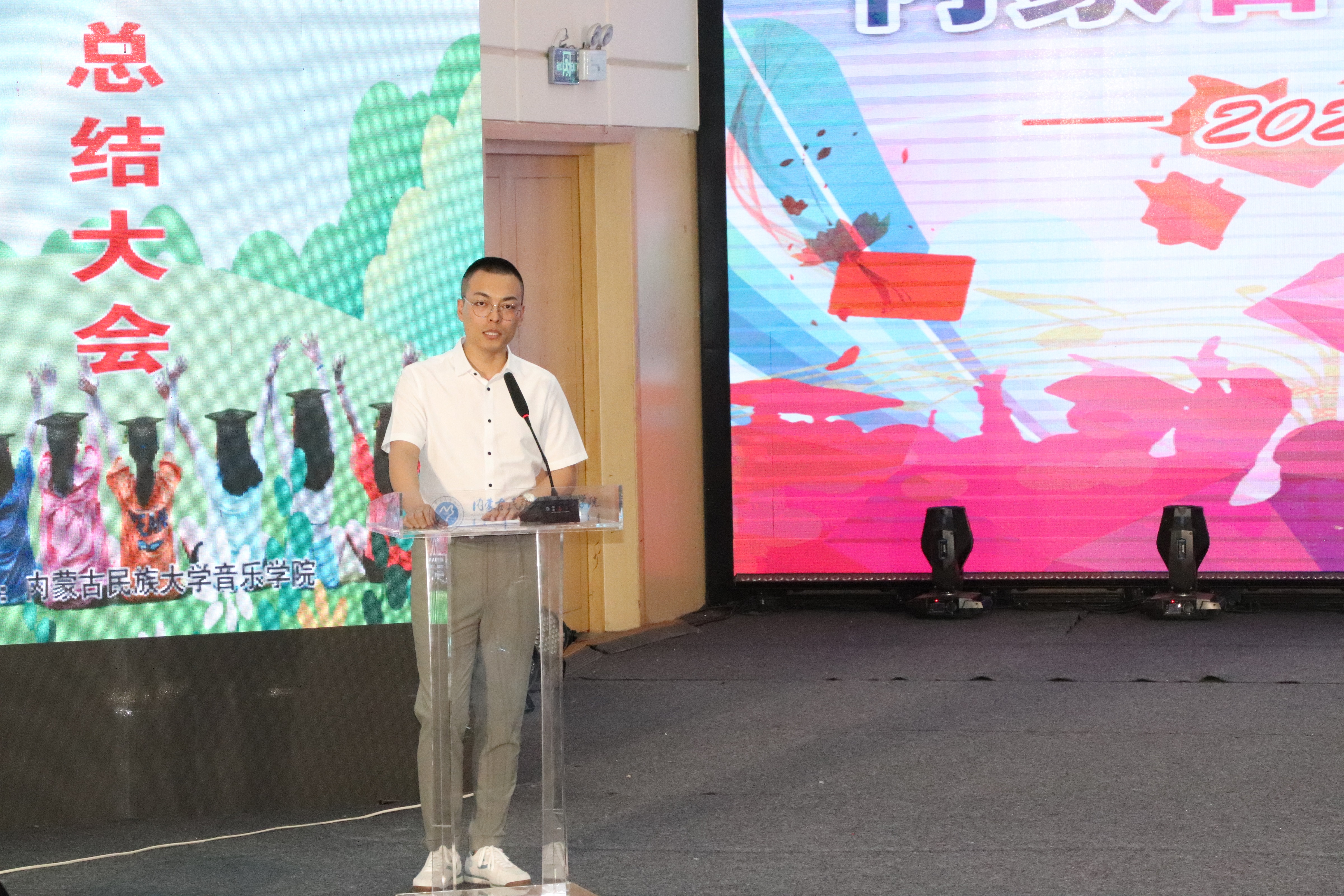 为全面总结2023年实习工作,检验课堂教学成果,总结实习经验,为学校的日常服务、教学、管理提供更有意义的经验总结,音乐学院于6月11日组织召开2023年实习总结大会。音乐学院领导班子成员、各实习基地领导和老师,音乐学院2020级全体实习生、2021、2022级见习生参加会议。会议由团总支书记越鸣珂主持。