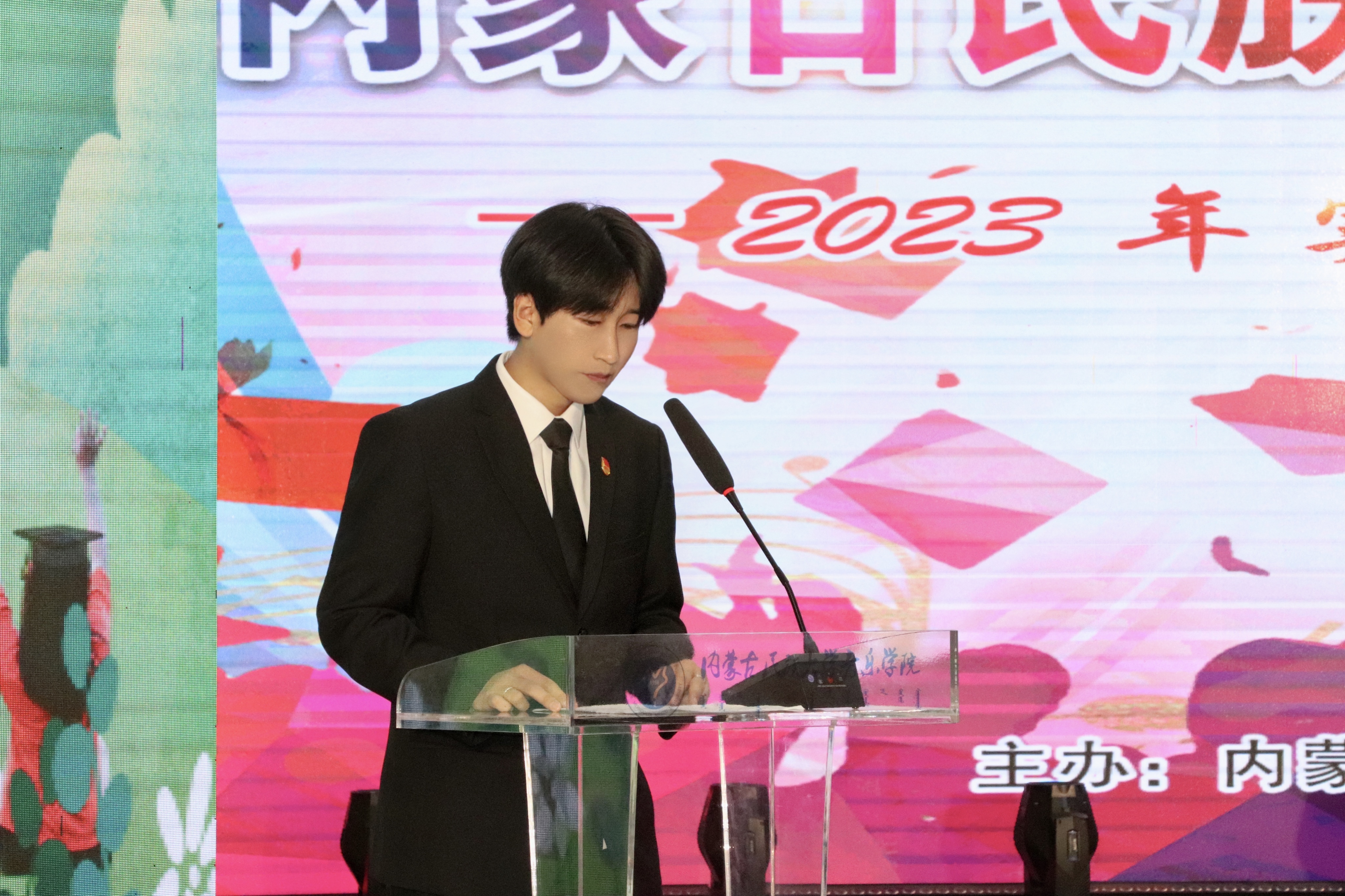 优秀实习生代表通辽市第八中学实习生、20级音乐学2班白茂荣同学上台发言