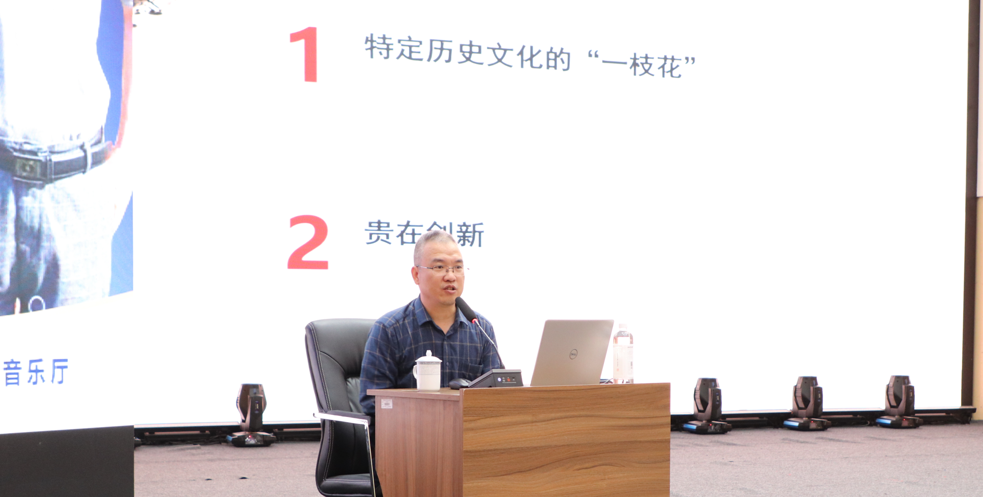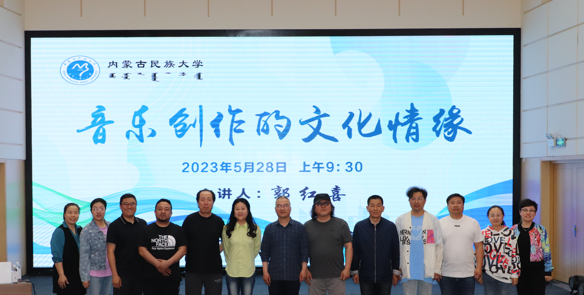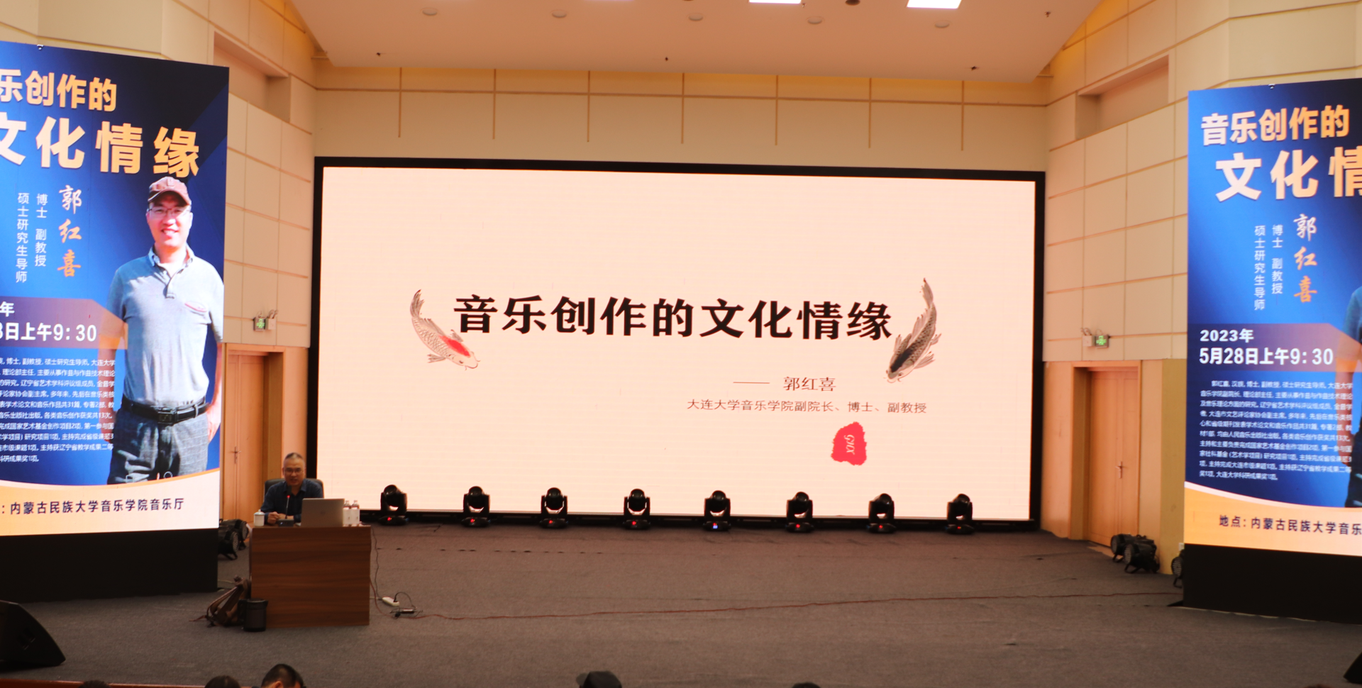 当天,郭红喜分别从贝多芬音乐、勋伯格《华沙幸存者》等音乐作品的文化内涵进行阐释、音乐学院院长贺希格图交响乐《科尔沁狂想曲》的创作、郭红喜《辽南畅想》的民族交响乐作品创作等三个方面为师生们讲授。讲座中,郭红喜教授首先就《科尔沁狂想曲》创作风格及学术价值、艺术价值进行宏观、微观分析,详细阐释音乐创作与文化情缘的内涵关系;之后,郭红喜教授就他创作的《辽南畅想》从“北方明珠”、“碧流河春早”“激情畅想”、“皮影意趣”四个乐章与师生们仔细聆听,分析作品创作风格及当代价值,进一步阐释音乐创作与文化情缘重要关系,并就“文化情缘”等话题积极互动。大家纷纷表示,通过聆听讲座使广大师生开拓了学术视野,增进了内蒙古与辽宁校际合作关系与文化交流碰撞,深化了对异地音乐的认识和理解,受益匪浅。