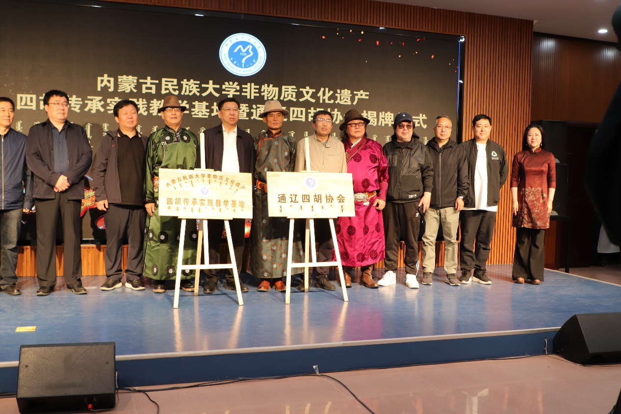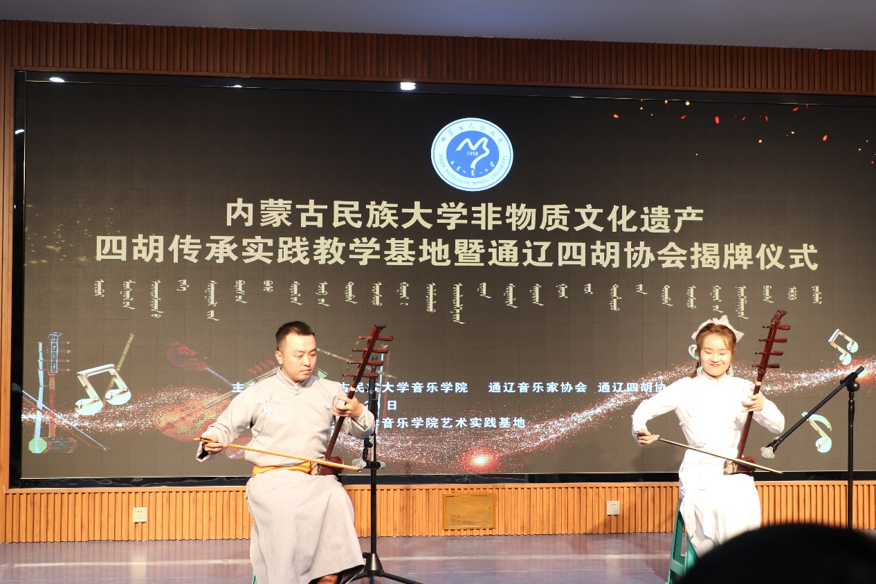 为传承和弘扬中华民族优秀传统文化,适应科尔沁优秀传统文化艺术传承工作和人才培养工作的新任务新要求,内蒙古民族大学音乐学院与通辽市四胡协会联合成立四胡传承实践教学基地及通辽市四胡协会。内蒙古民族大学作为地方高校,将充分发挥高校在非遗文化传承发展保护中的作用,依托学院师资优势和专业特色构建教学科研与实践为一体的综合性发展平台,不断提升教育教学质量促进四胡音乐的保护与传承,培养更多高质量的民族音乐人才以达到拔尖创新人才培养以及四胡艺术研究传承的目标。