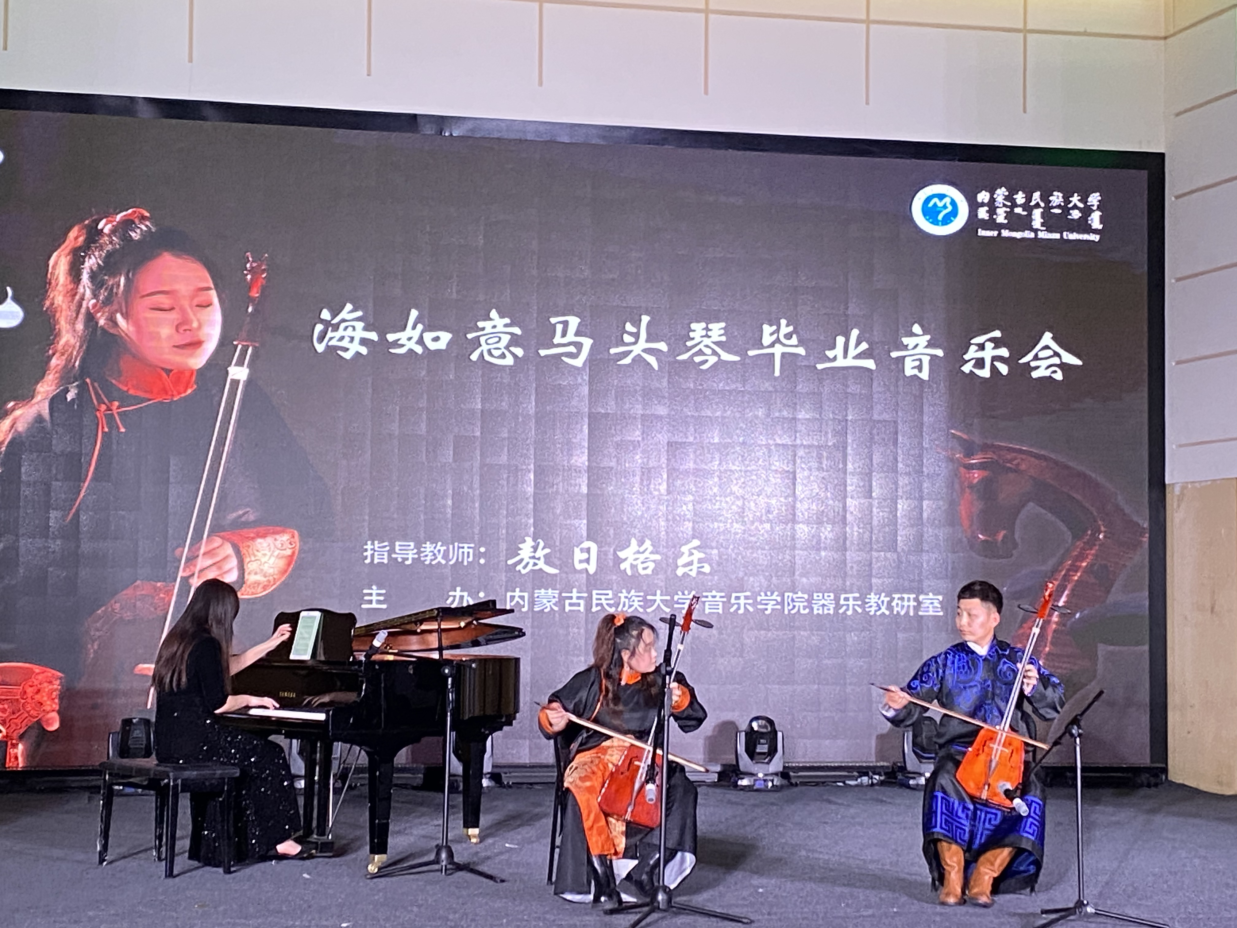 音乐会最后,海如意同学向学院的领导老师们表示了衷心的感谢,并表示将继续努力,以自己的奋斗书写更加绚丽的青春华章,在祖国北疆这道亮丽的风景线上为民族音乐文化的传承发展作出更大贡献。