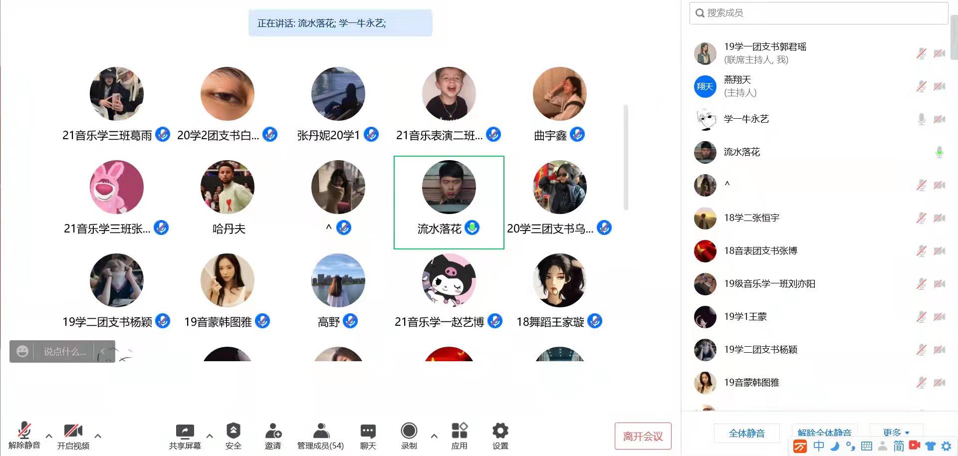 为深入推动党的民族理论政策更加深入人心,全面加强学生干部政治理论学习,提升学生干部对意识形态极端重要性的认识,4月8日20:40音乐学院团总支开展线上会议部署近期重点工作暨青马班集体学习会。音乐学院团总支副书记越鸣珂带领团总支成员、学生会成员、各支部团支书共同参加会议。