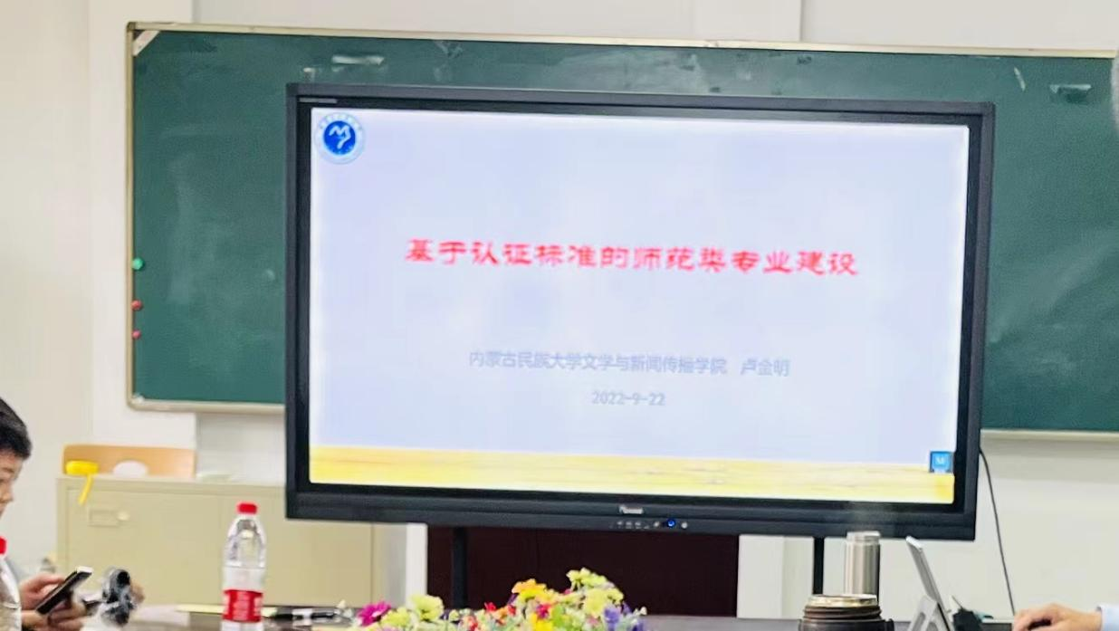9月22日,音乐学院11名教师在副院长赵伟晶教授的带领下赴文学与新闻传播学院进行专业认证工作的学习。文学与新闻传播学院学院党总支书记王振宇老师、院长郝青云教授、副院长王金双教授、孙艳艳教授出席并参加本次学习与交流活动。专业认证负责人卢金明教授做题为“基于认证标准的师范类专业建设”专题讲座。