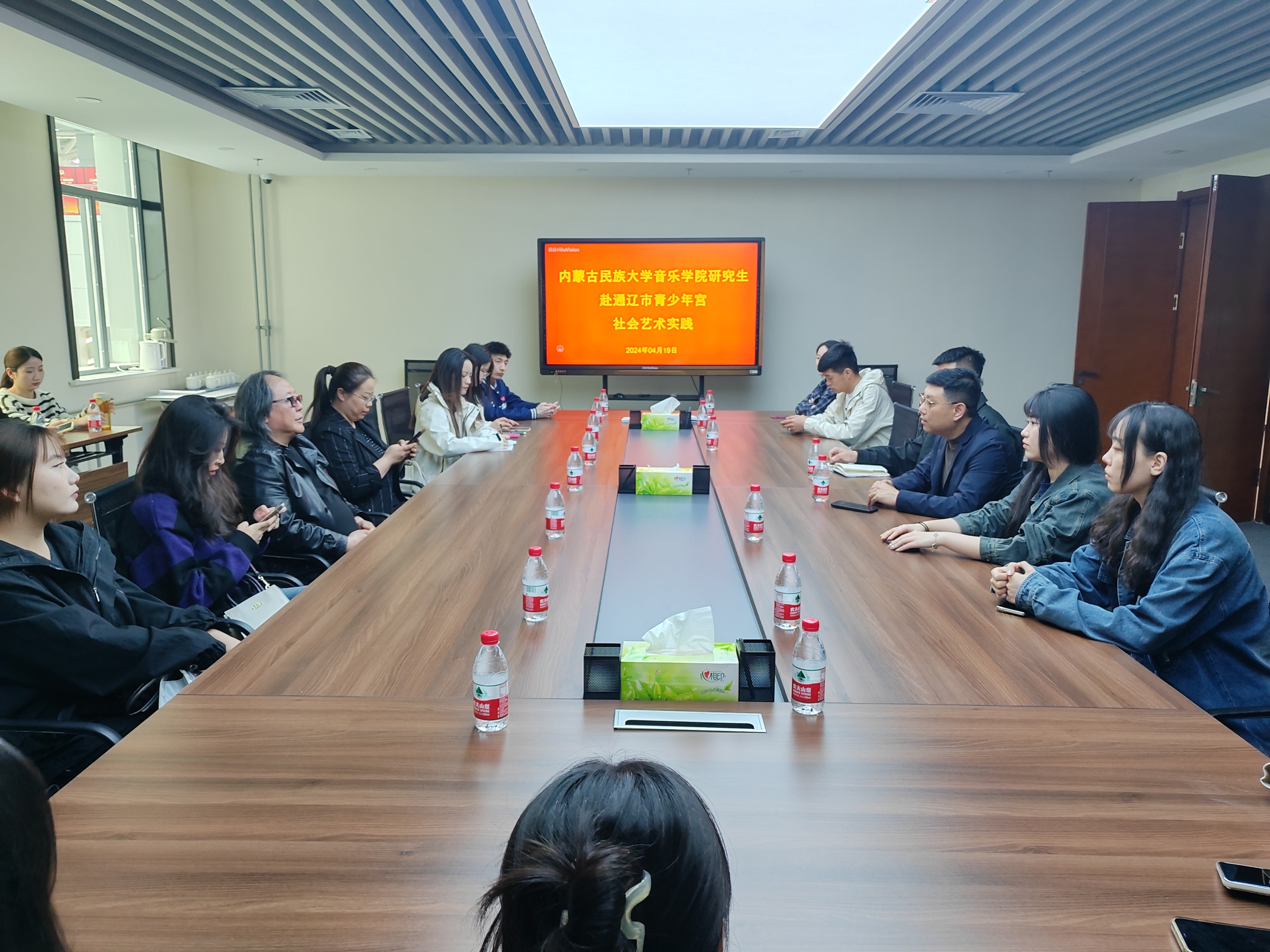 内蒙古民族大学音乐学院积极响应国家教育方针,致力于将理论与实践相结合,以提升研究生的音乐艺术理解和实践能力。4月19日下午,在温泽教授的带领下,音乐学院研究生团队赴通辽市青少年宫参观调查,并与青少年宫领导及教师团队围绕高质量就业、青少年人才培养和校地合作等方面进行了深入的座谈交流。通辽市青少年宫主任耿炜然、活动部马宇航、音乐学院学科与研究生教育办公室主任娜布其及音乐系研究生共30余人参加座谈。