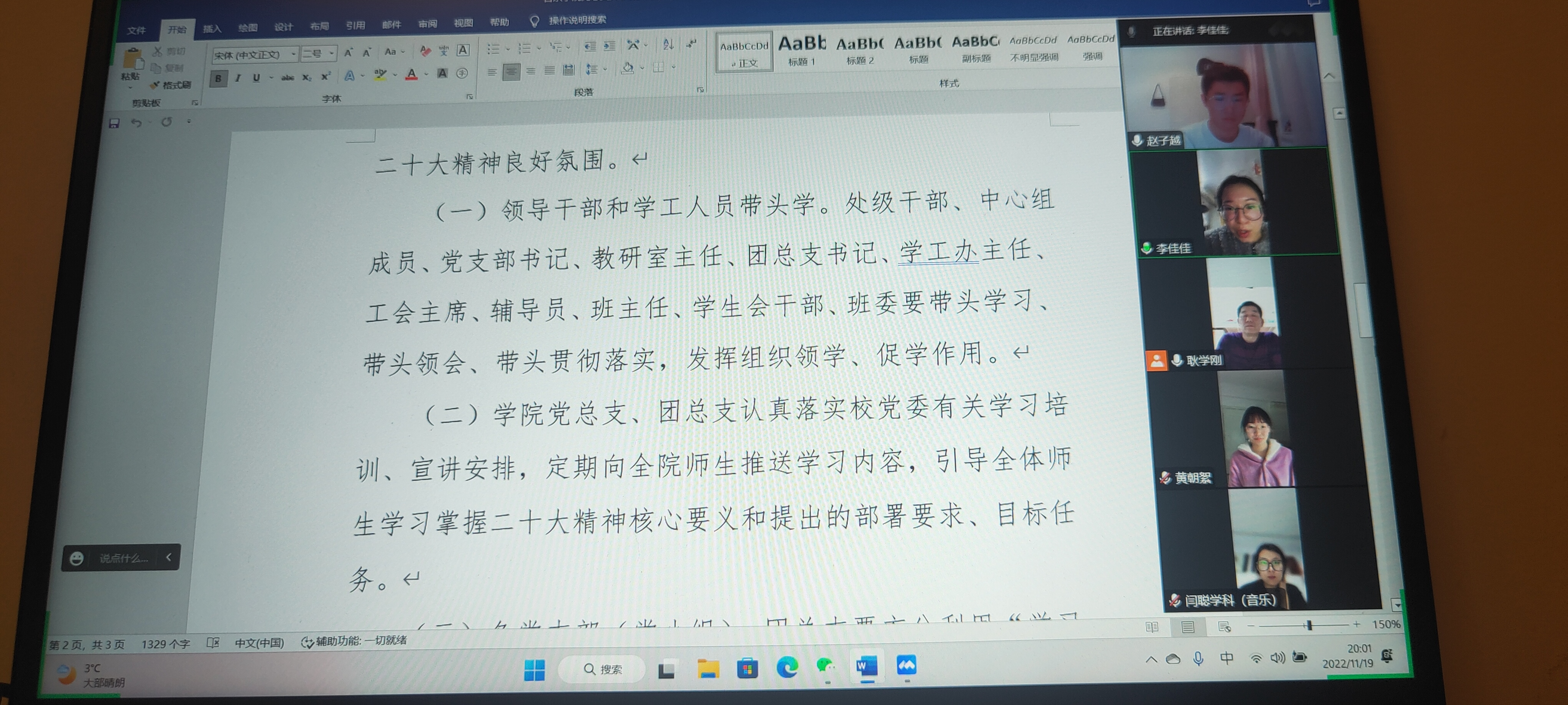 为深入学习宣传党的二十大精神,有序推进学院党务工作,音乐学院于11月19日晚特成立我院研究生党小组,本小组旨在统筹安排,精心组织相关党务,制定好学习中央精神具体方案,认真组织好中央精神宣讲活动,采取有力措施,作出周密部署,对党组织所传达的内容深入学习,相关工作予以精准指导。