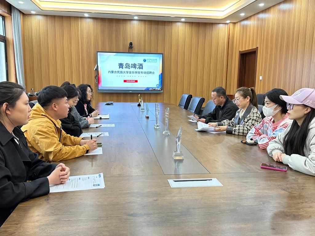 为进一步做好高校毕业生春季促就业攻坚活动,助力2024届毕业生更加充分、高质量就业,助力人岗精准匹配,积极为企业和毕业生搭建“面对面”交流平台,音乐学院于2024年4月28日在逸夫楼会议室举办青岛啤酒内蒙古民族大学音乐学院专场招聘会,辅导员庞志华出席并主持本次会议。