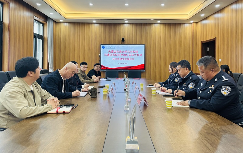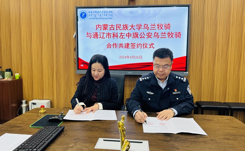 2024年4月26日下午,内蒙古民族大学乌兰牧骑与通辽市科左中旗公安乌兰牧骑合作共建签约座谈会暨文艺汇演活动成功举办。内蒙古民族大学音乐学院党委书记吴松林、党委副书记院长赵伟晶教授、科左中旗公安局党委委员、政委武林,科左中旗公安局政治工作办公室主任吴仁钦,科左中旗公安局政治工作办公室副主任张伟及音乐学院相关负责人参加活动。会议由音乐学院表演系主任包那日苏主持。